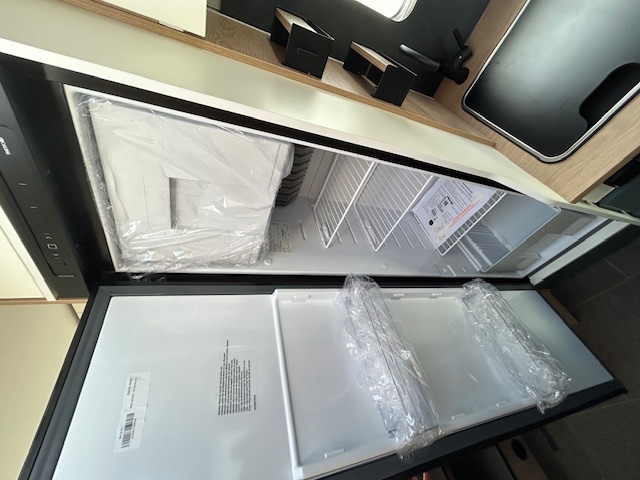 - Réfrigérateur à absorption, gestion automatique et caches grilles : 141 L