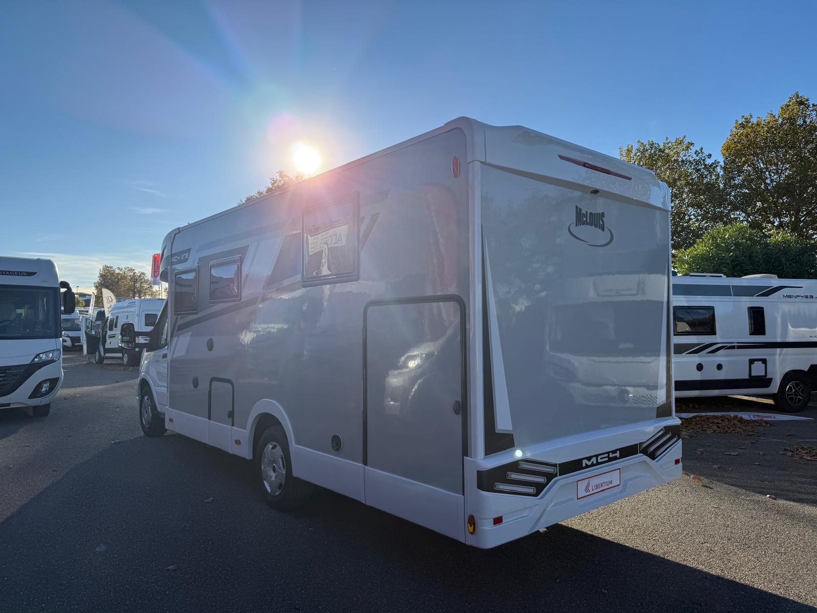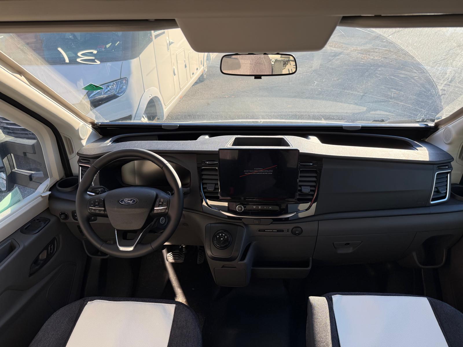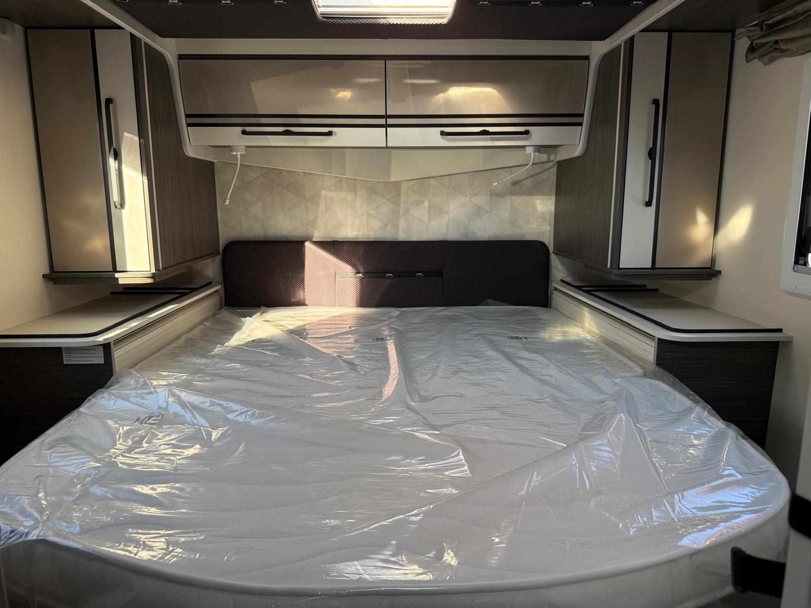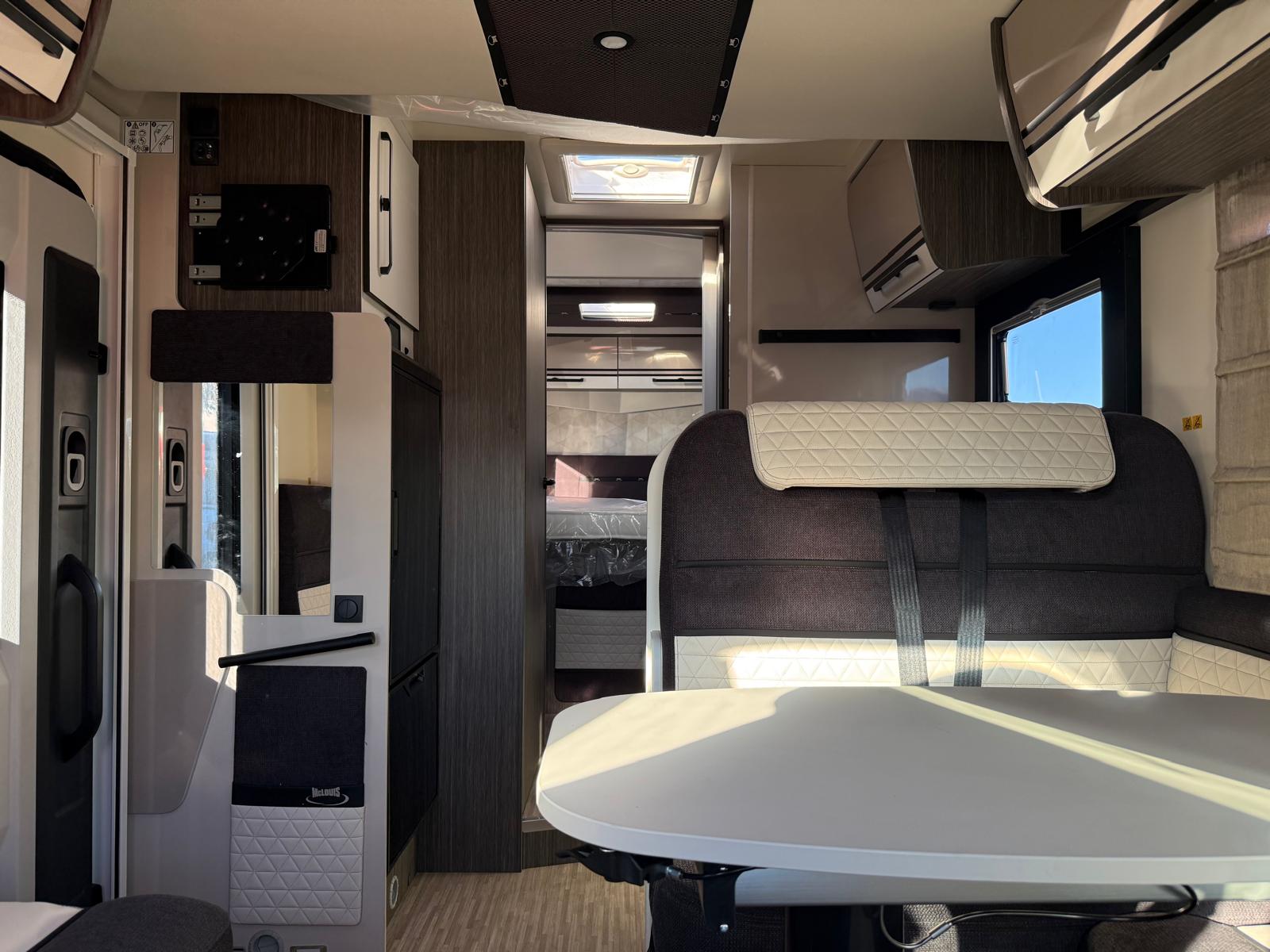 Le MC4 879 est un profilé sur porteur FORD boite automatique de 7.45m équipé d'un lit central et lit pavillon.