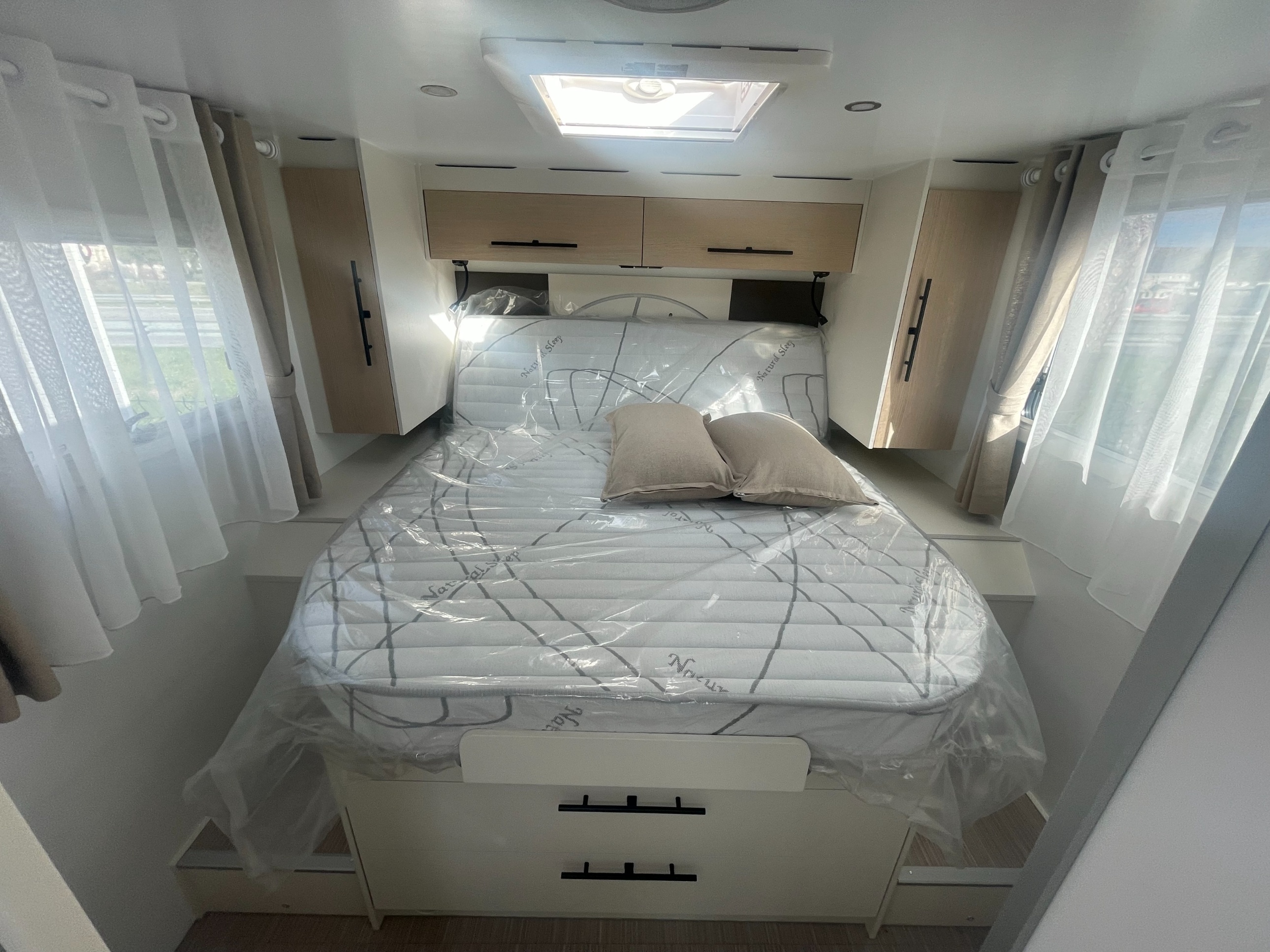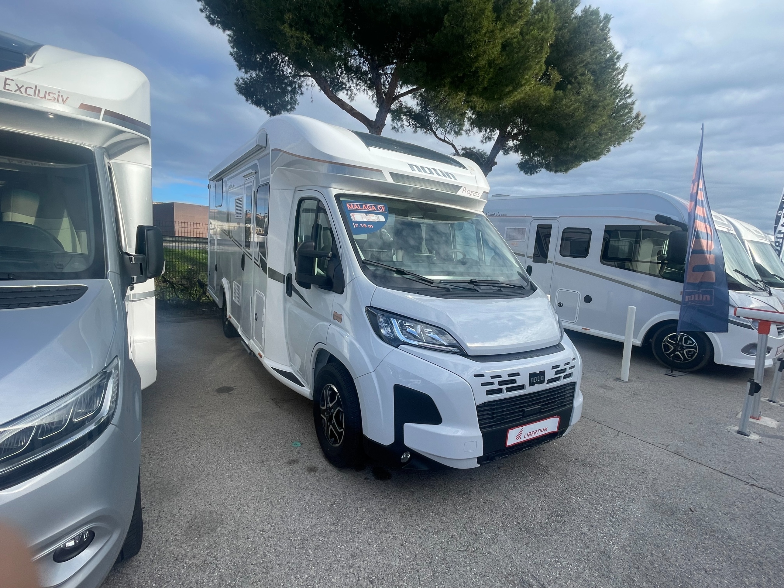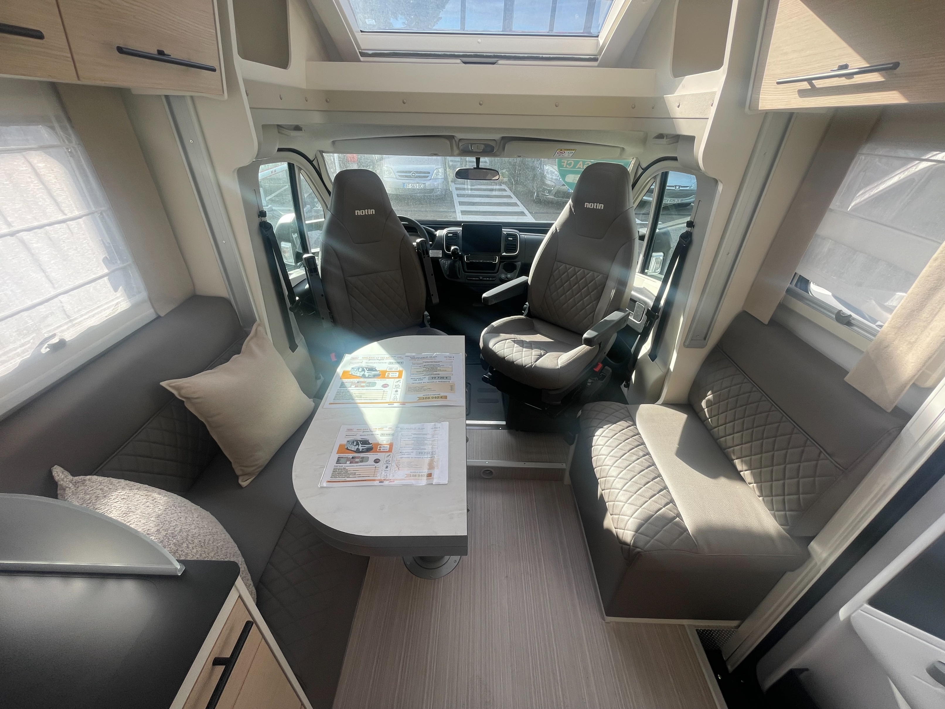 Le camping-car Notin Malaga CF est un profilé haut de gamme de 7,19 m monté sur un porteur Fiat Ducato, conçu pour offrir confort et autonomie avec un lit central spacieux, un salon convivial face-à-face et une cellule bien isolée idéale pour les longs voyages. Il peut accueillir jusqu’à 4 personnes en route et propose un bel équilibre entre espace de vie, équipements modernes (pack autonomie, panneaux solaires, batterie lithium, etc.) et finitions soignées dans une ambiance intérieure lumineuse.