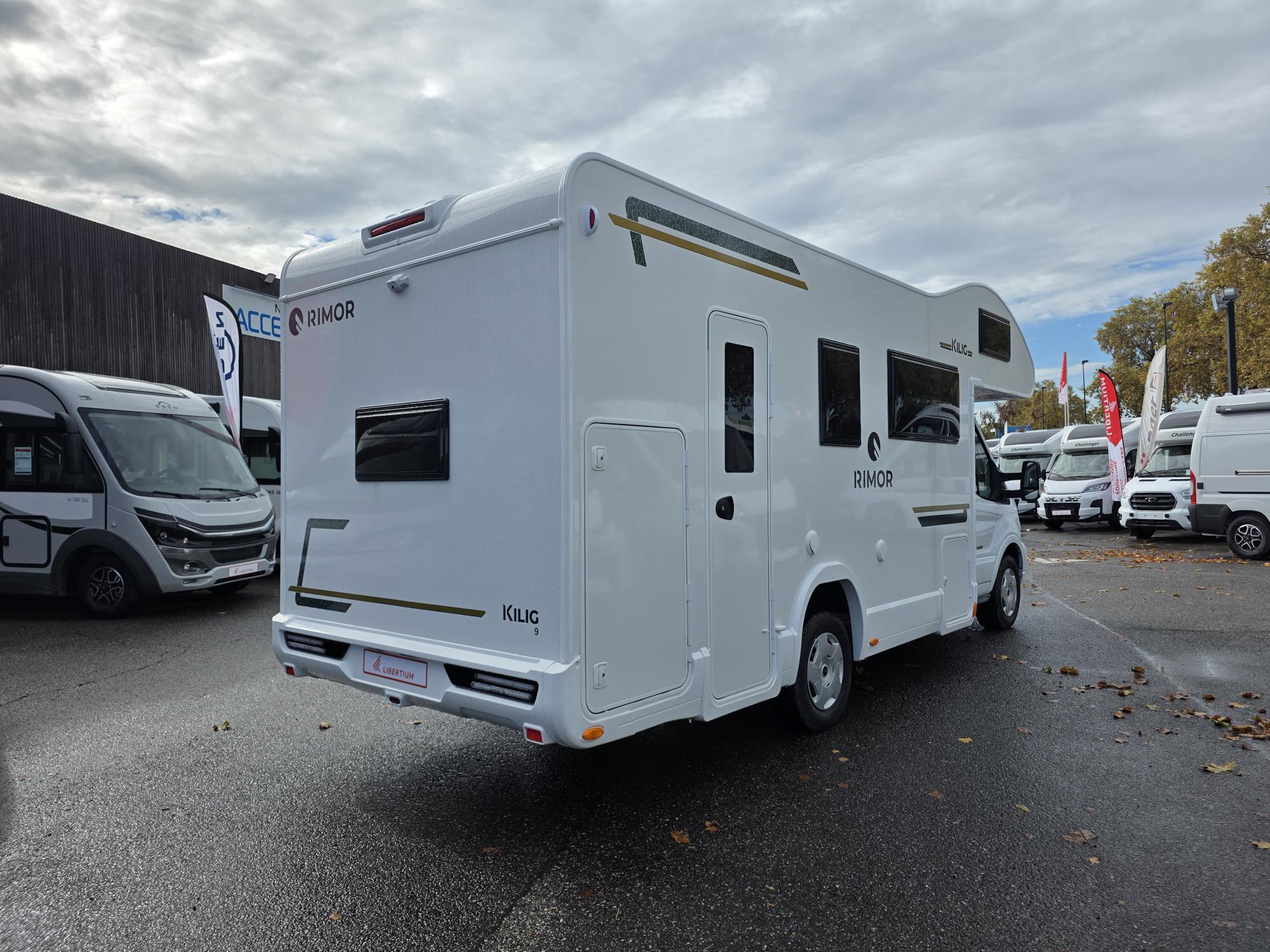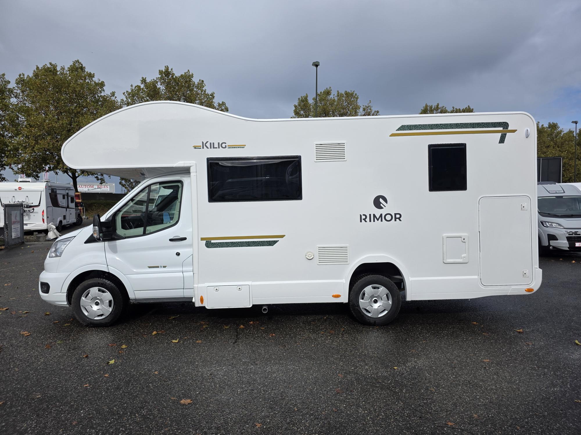 Découvrez le modèle Rimor Kilig 9 sur porteur Ford 2.0L 165 cv boite automatique ! Implantation en capucine, lits superposés et double lits dinette. Avec ses 7 places carte grise et 7 places couchage, ce Kilig 9 sera adapté pour vos longs voyages à plusieurs.