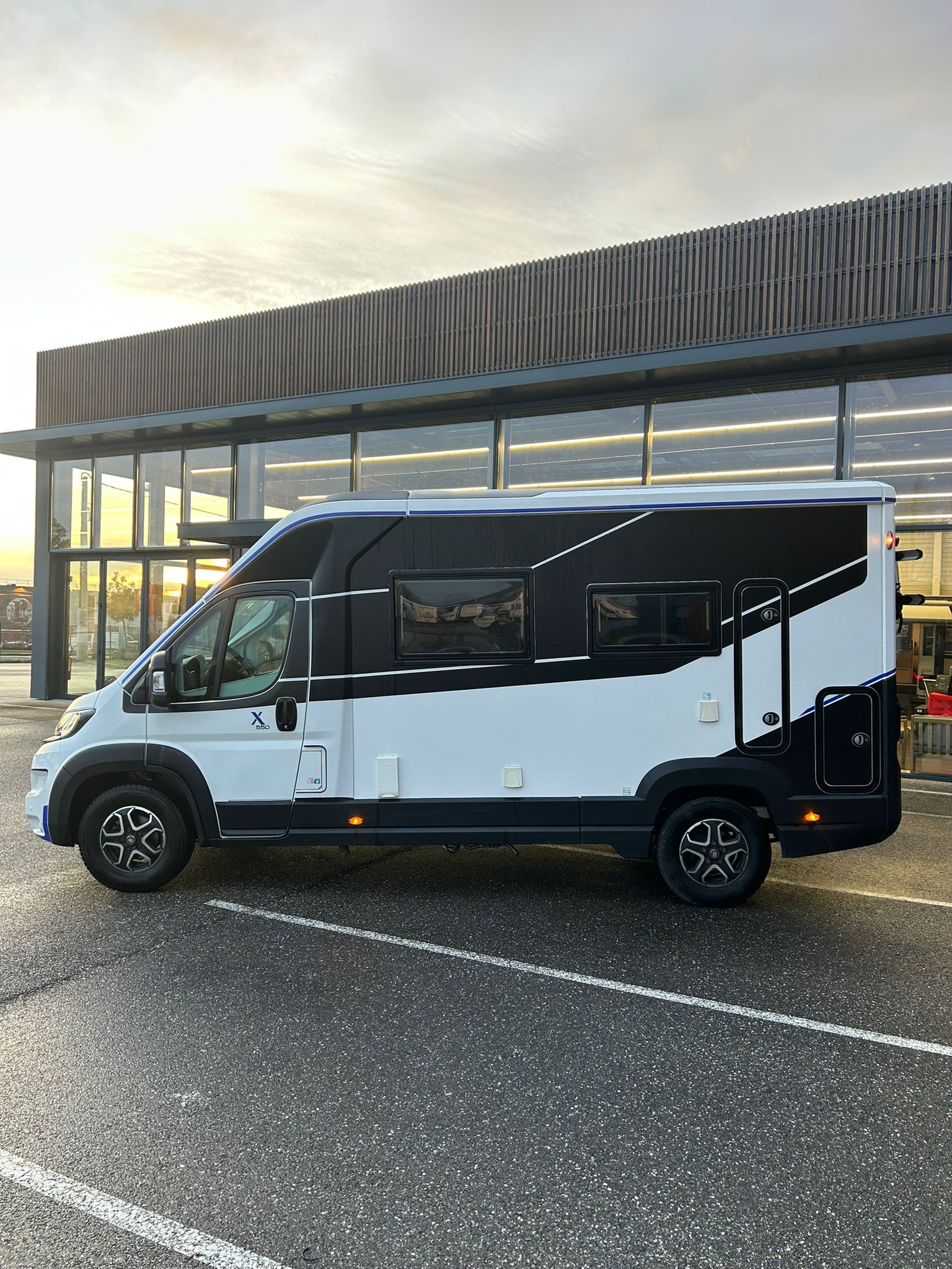 Le CHAUSSON X550 EXCLUSIVE LINE sur porteur FIAT DUCATO 2.2L 140CV, collection 2022, est un camping-car compact au design innovant alliant confort et maniabilité. Ce modèle d'occasion en très bon état offre un agencement moderne, idéal pour voyager en toute liberté avec style.
