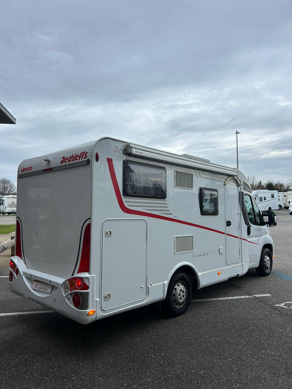 DETHLEFFS GLOBEBUS T15 de 2012, sur base Fiat 2.3 L – 130 ch, 4 places carte grise. Camping-car profilé compact, reconnu pour sa qualité de fabrication, sa facilité de conduite et son excellent confort à bord, parfait pour les escapades comme pour les longs voyages