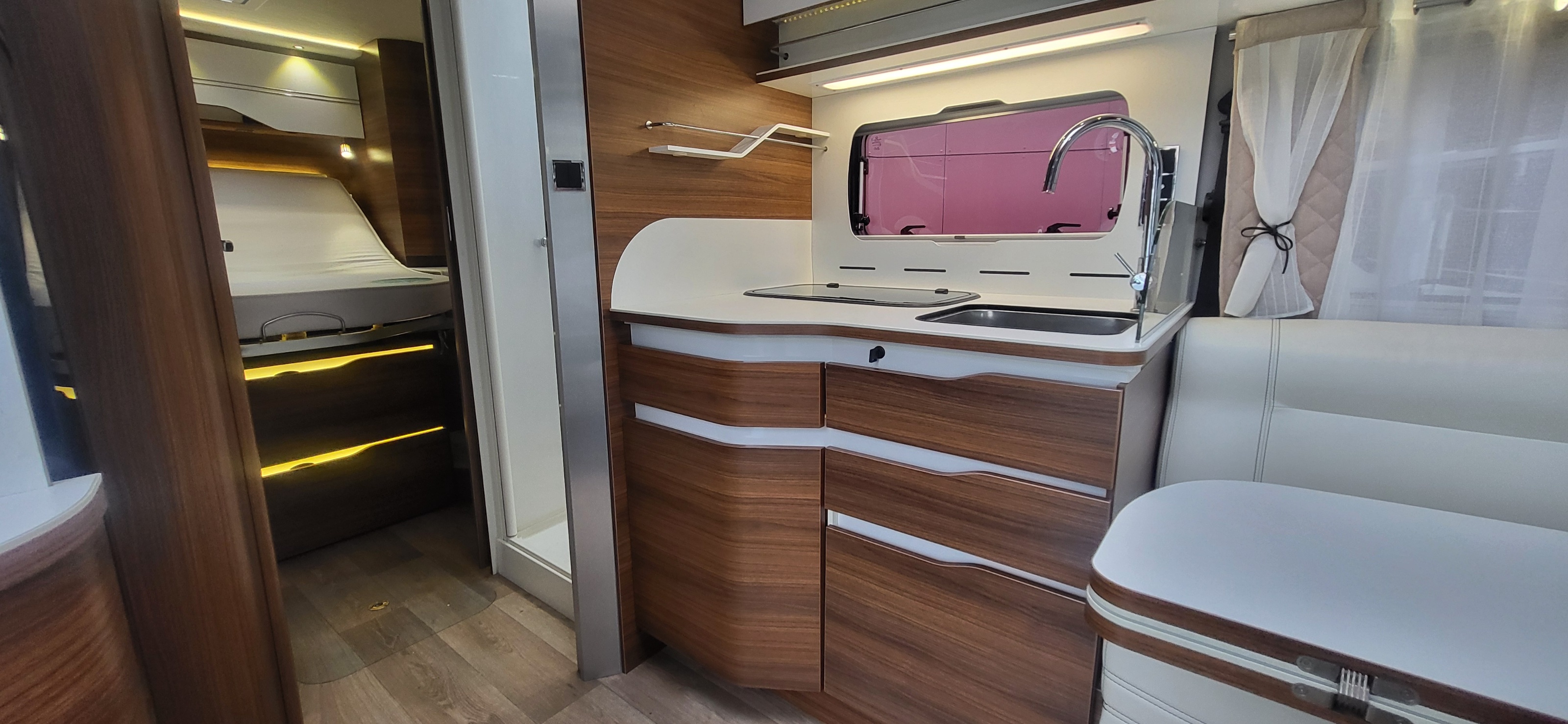 Camping car haut de gamme le voyageur en lit central disponible à la vente. Equipements complet et plus de renseignements en contactant la concession LIBERTIUM à Mérignac