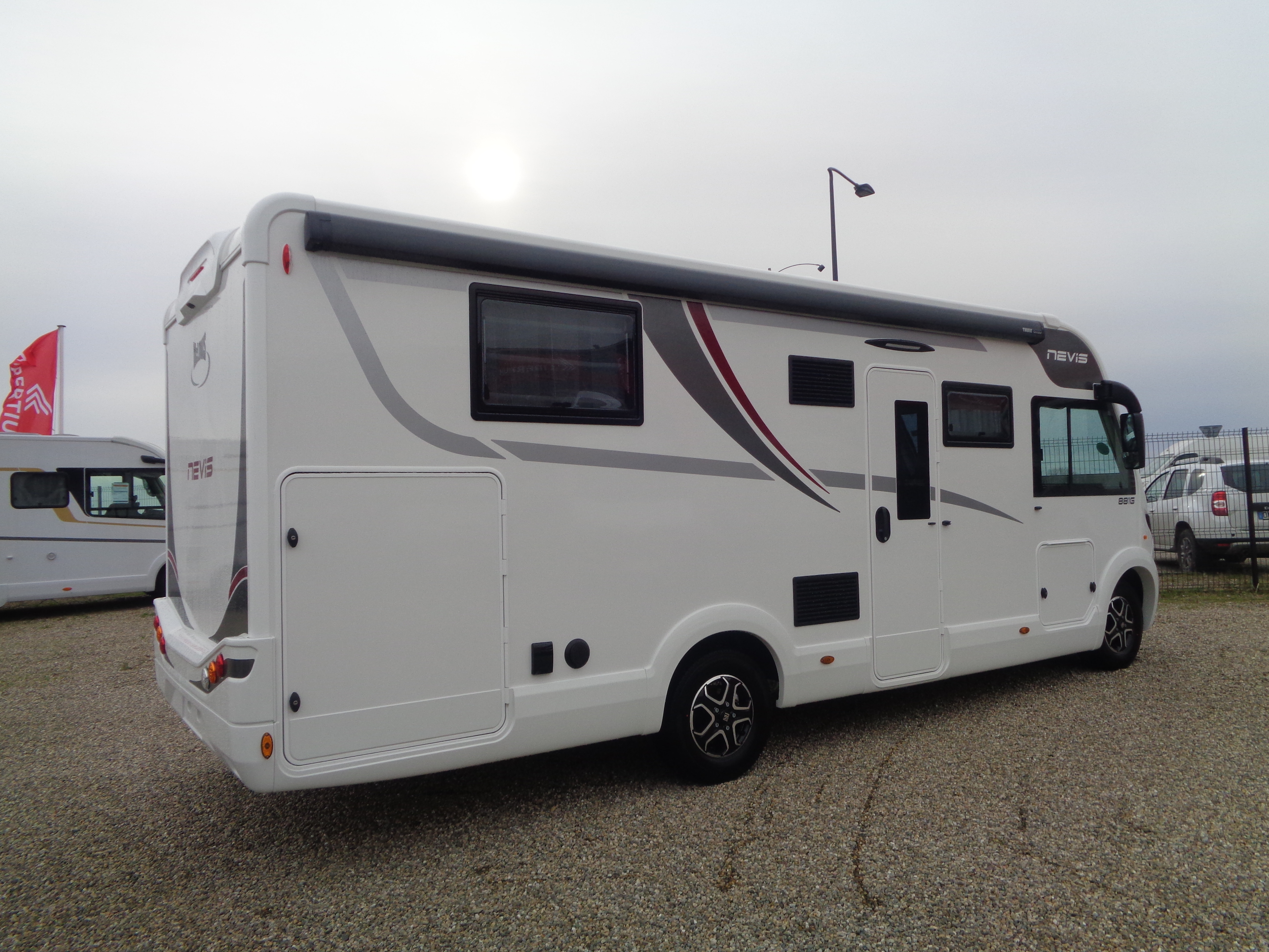 A saisir !!!! superbe Mc Louis Nevis 881 modèle 2025 Seulement 7 390 km !! Prix neuf avec options : 92 400 € TTC, prix de cette superbe occasion : 79 990 € TTC. Avec salon face/face + lit central de 160 cm et double accès wc et douche avec une double cloison pour un meilleur confort en famille. Le haut de gamme de la marque. Moteur 180 Ch et oite Automatique pour un meilleur confort de route. Mc Louis Nevis 881, tout simplement magnifique !!!! Une ambiance raffinée pour cet intégral : mobilier en bois avec rebord laqué et maxi salon . Importants rangements en soute, un véritable compagnon de route pour vos petites ou grandes sorties. Un concentré de plaisirs . Dimensions portes soute : 115 x 95 cm et 115 x 95 cm (hauteur maximale soute 125 cm) Garage avec capacité de charge jusqu'à 300 Kg. Dimensions lits : lit central 190 x 150 cm, lit de pavillon 187 x 134 cm (DESCRIPTION SOUS RÉSERVE D’ERREUR, OPTIONS À VALIDER SUR PLACE)