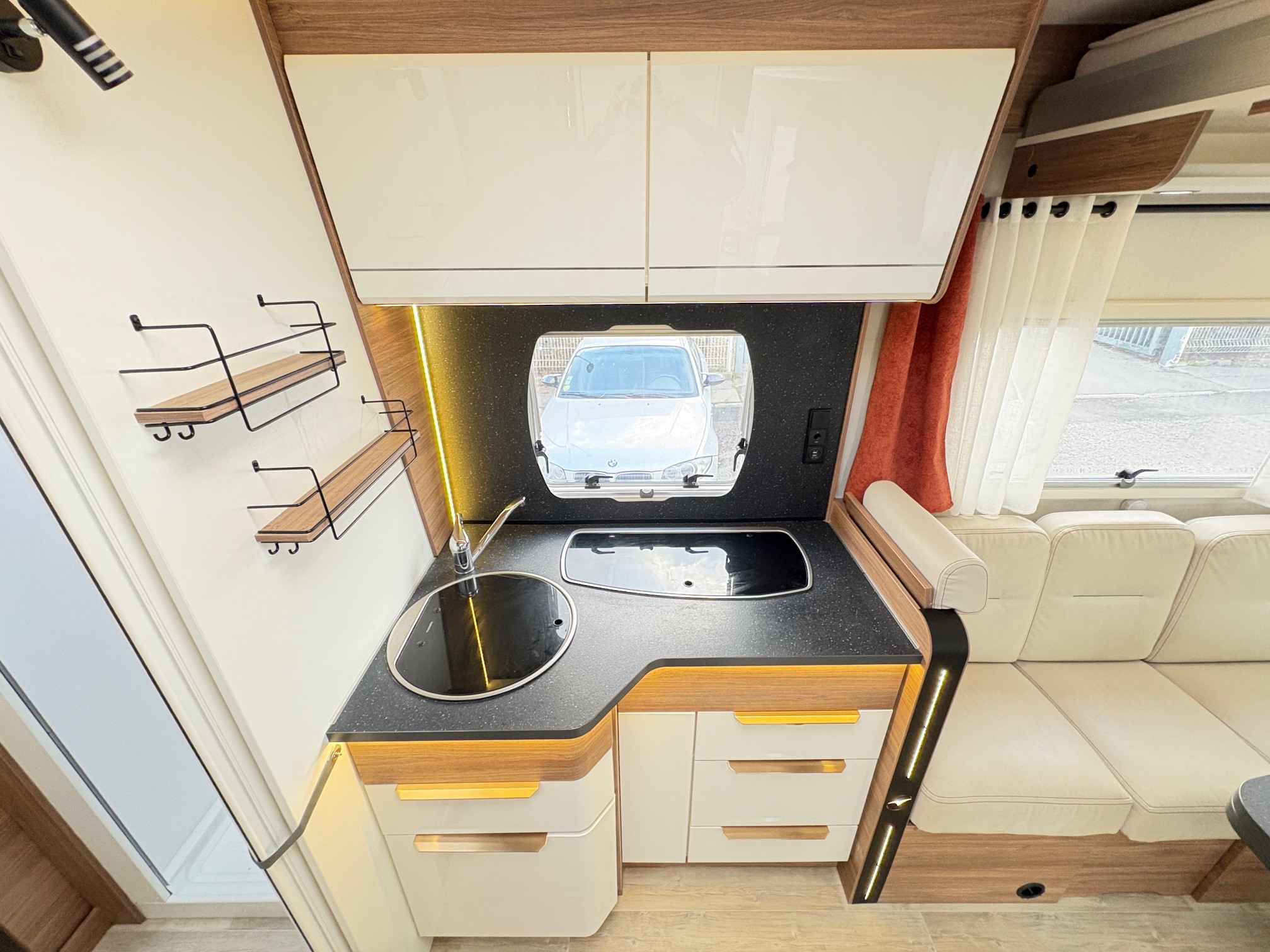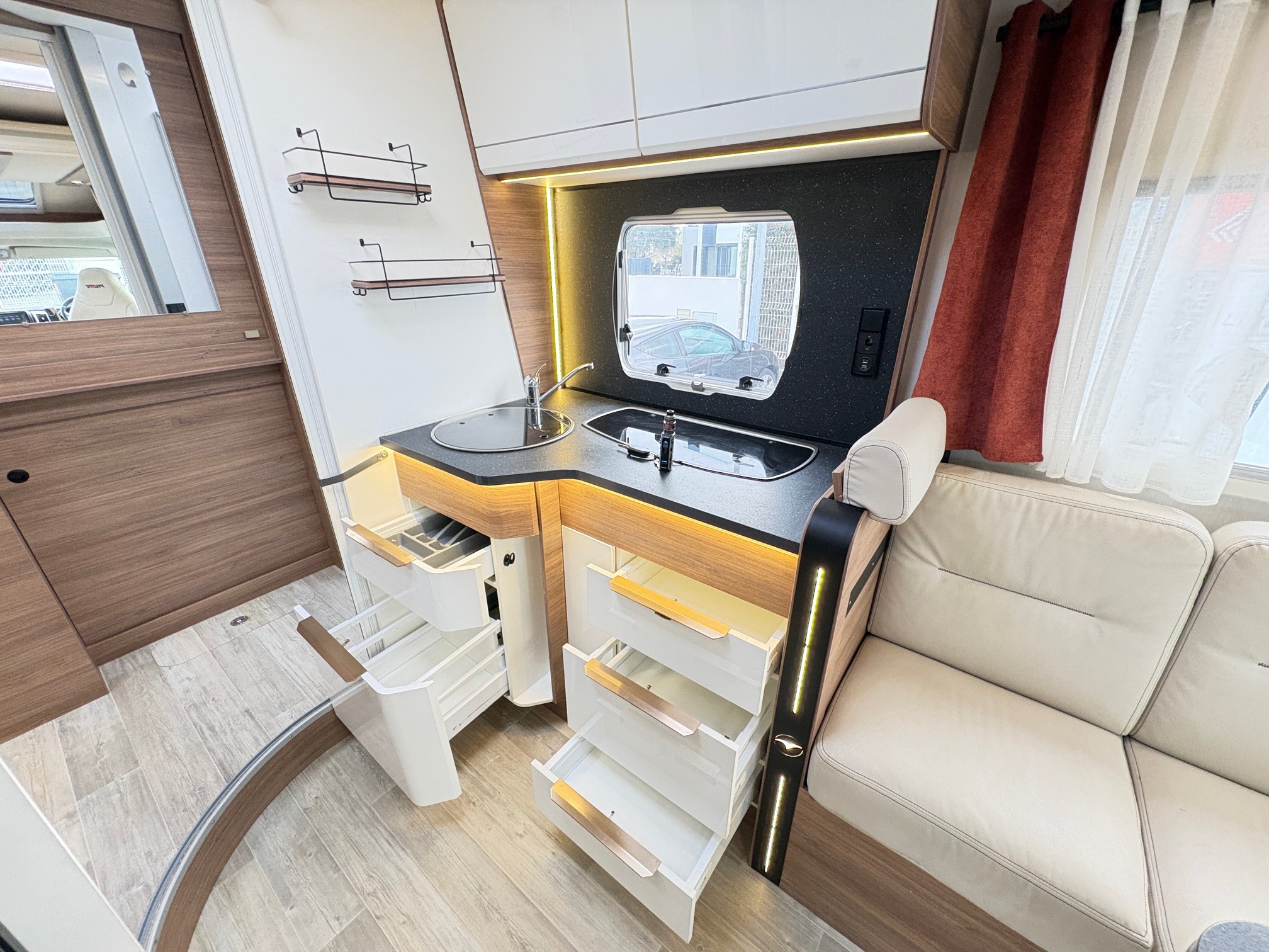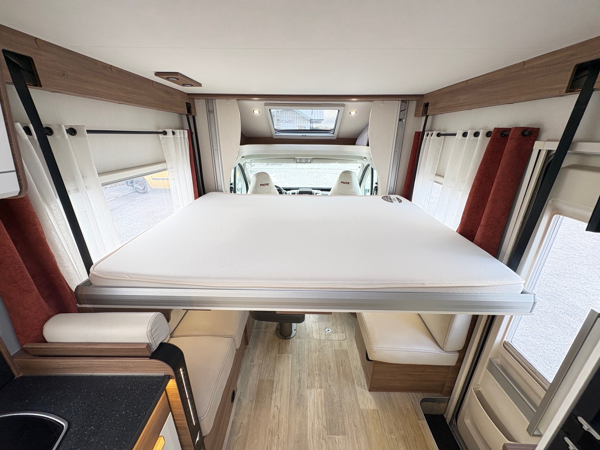 Ce profilé de moins de 7 mètres fait partie des modèles les plus spacieux de la marque. L’absence de lit fixe lui offre un agencement original et donne place à un salon XXL, de quoi partager de bons moments en famille ! Venez découvrir ce véhicule sur place !