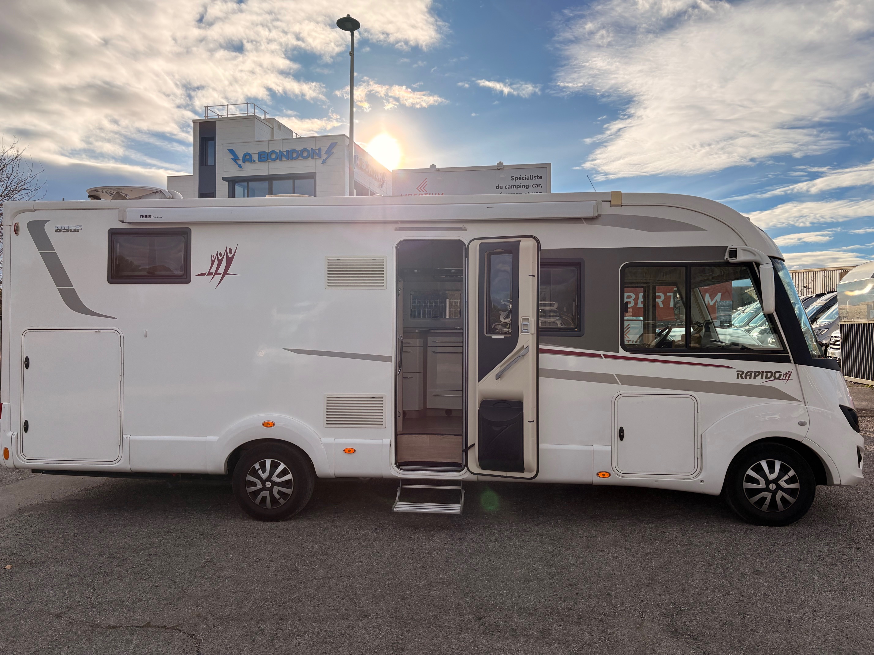Le Rapido 896 F est un camping-car intégral de 7,5 mètres, conçu pour offrir un confort luxueux dans un espace raisonnable. Il peut accueillir jusqu'à 4 personnes et dispose d'un lit central confortable et d'un salon convivial. Visible chez libertium Montpellier.