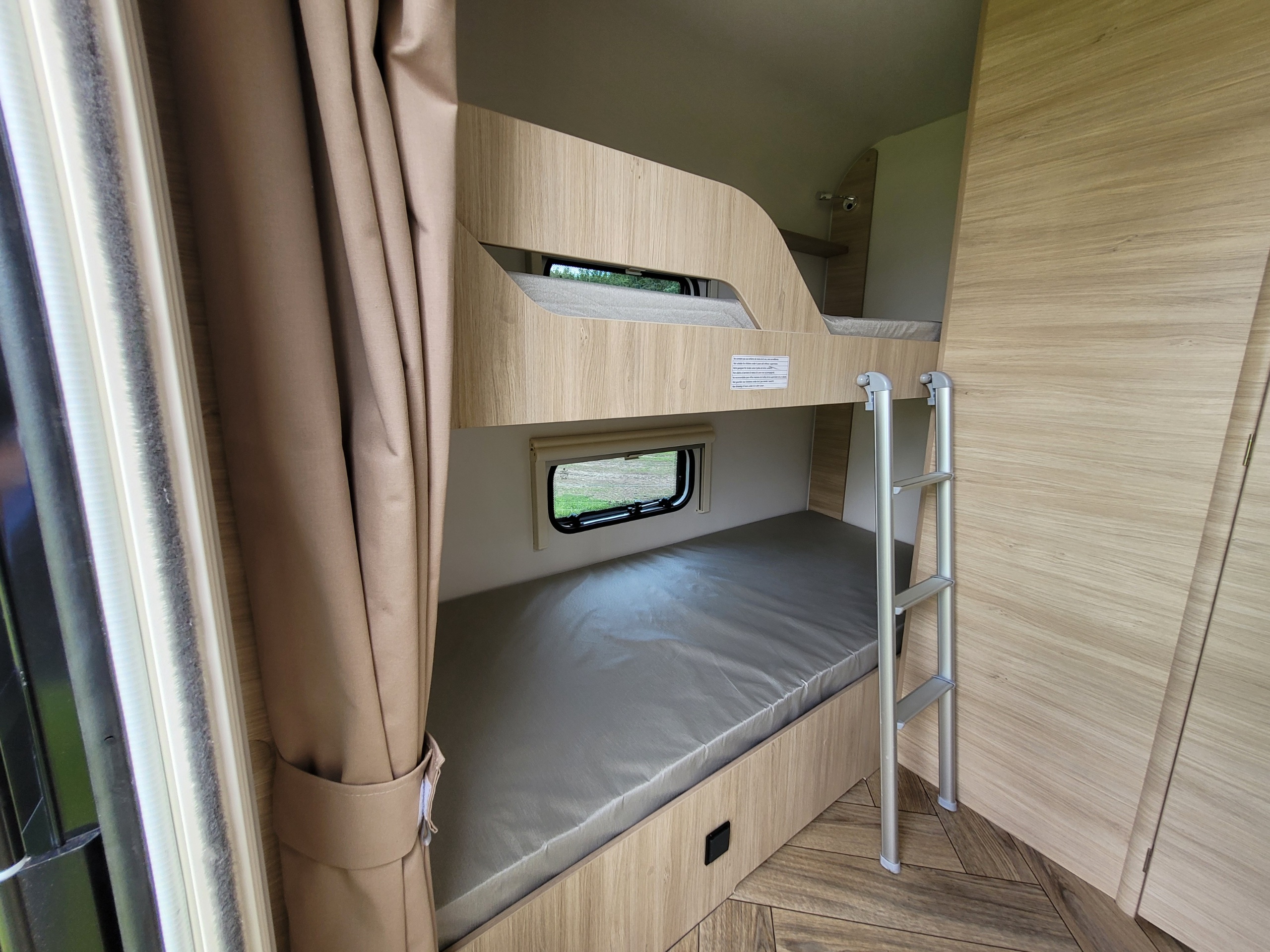Caravane de la marque française Caravelair, idéal pour une famille, chauffage, eau chaude, anti-lacets de série. A visiter sur Sainte Eulalie