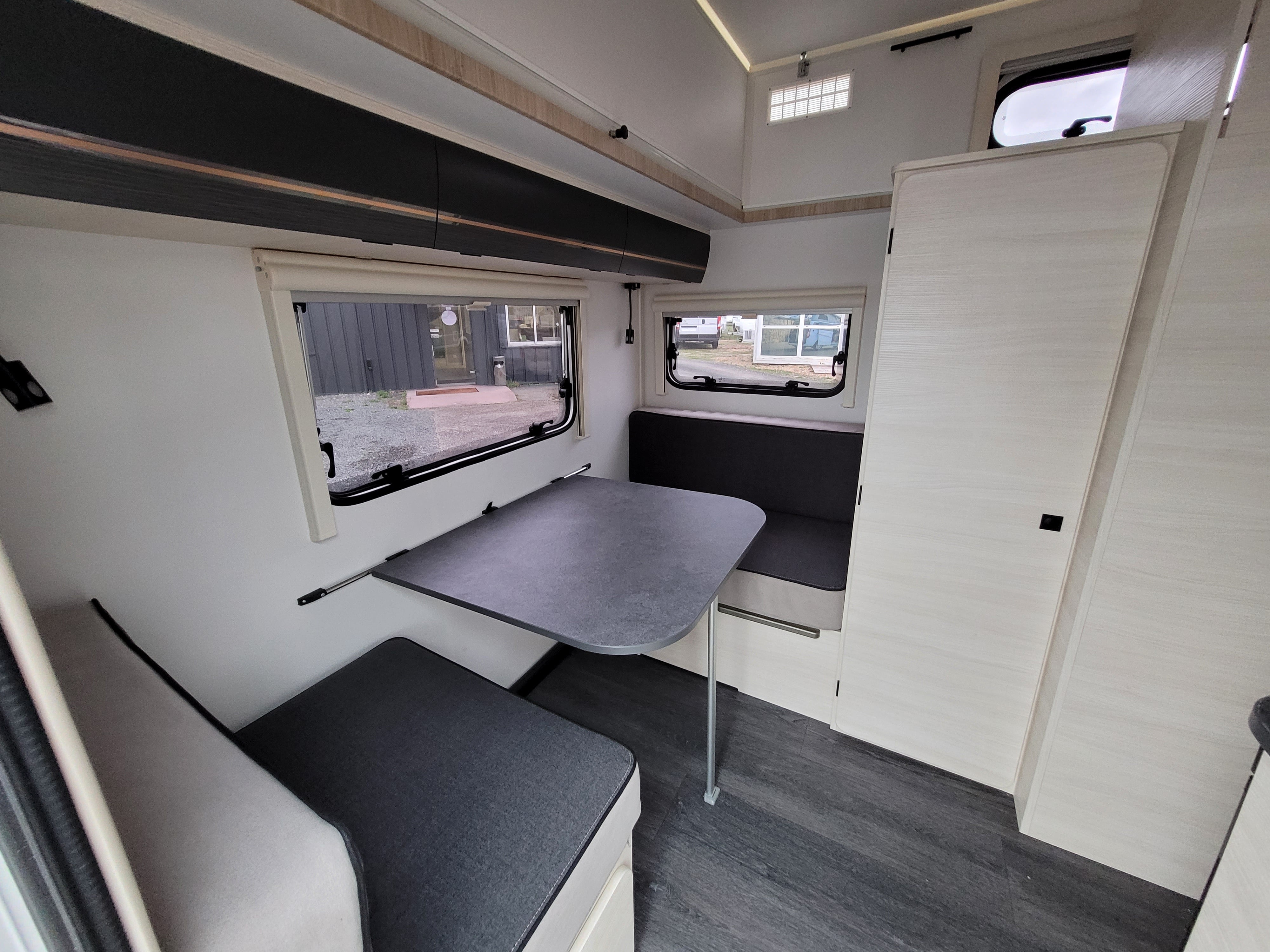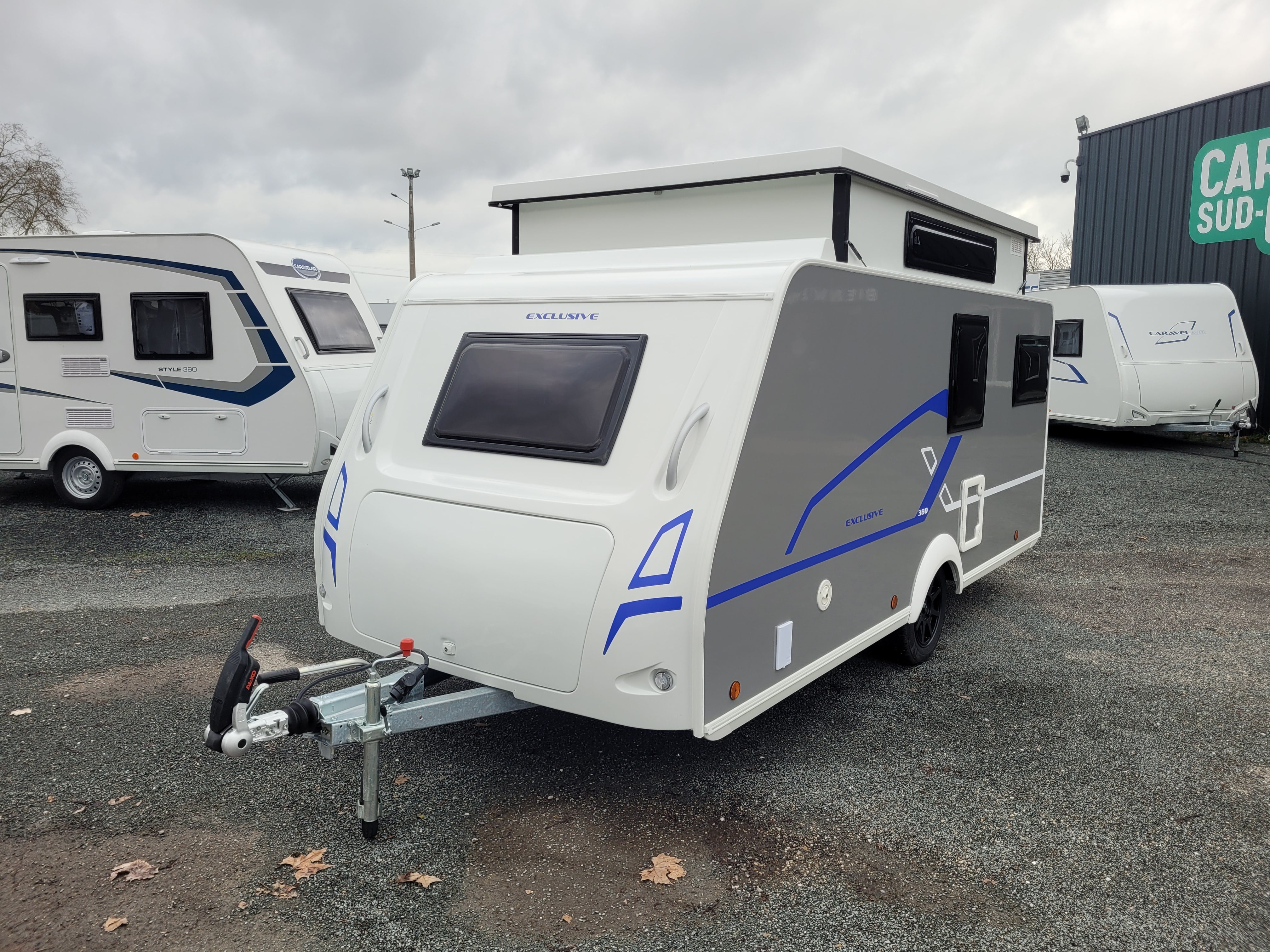 "Découvrez la nouvelle SILVER 380 Exclusive Line, cette petite caravane à toit relevable vous permet une facilité de déplacement et une traction beaucoup plus simple grâce notamment à sa hauteur de seulement 1,98m. Profitez du confort d'une grande caravane avec un salon face-face, cuisine latérale, un coin salle de bain et un lit transversal sur la partie avant. Sa finition spéciale exclusive line au design unique finira de vous séduire. Venez la découvrir sur notre parc à Sainte Eulalie"