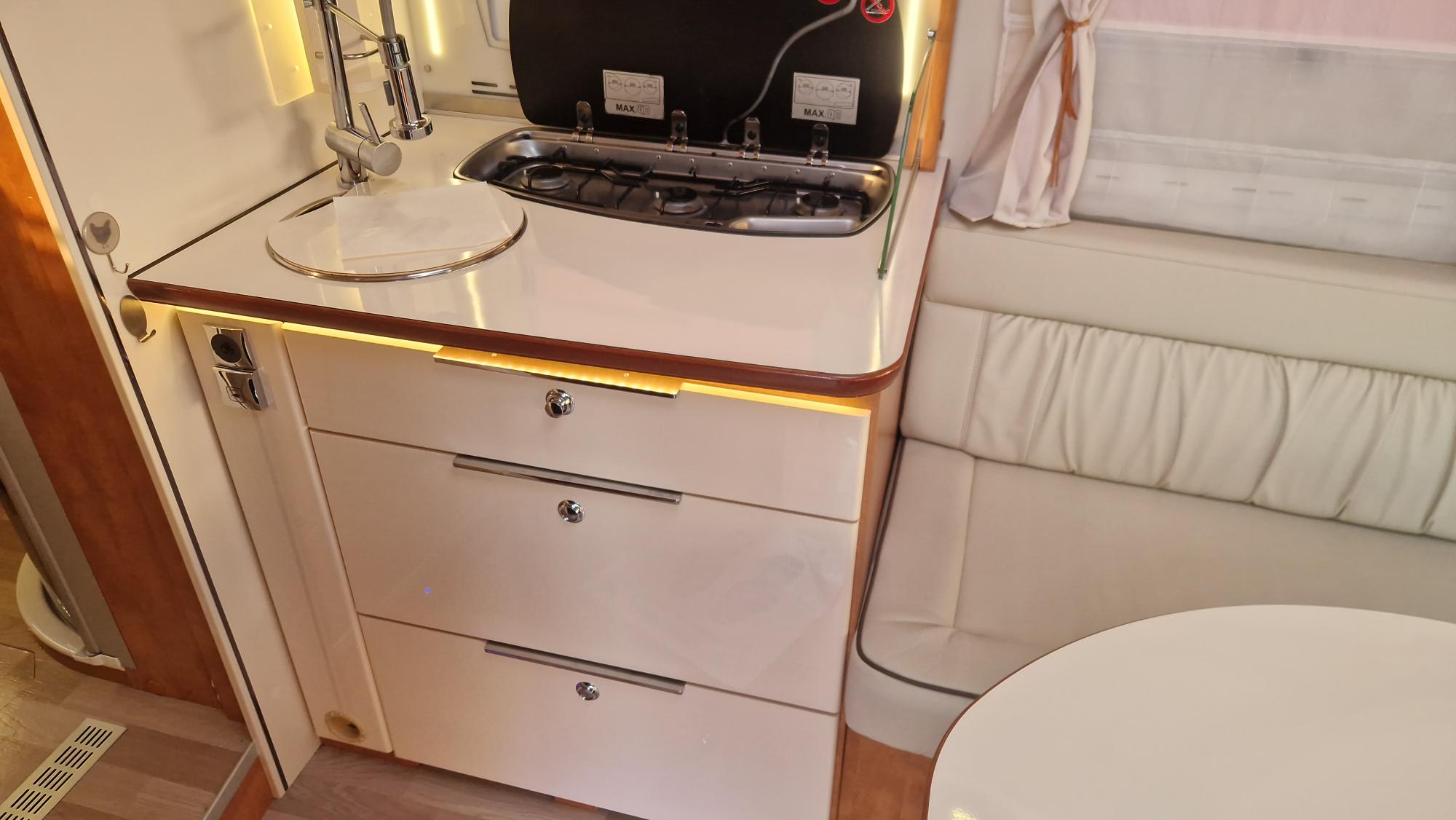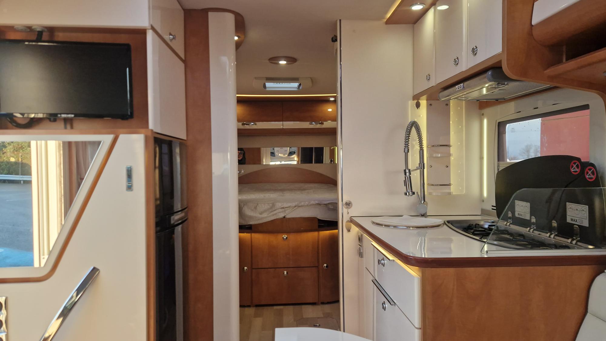 Superbe intégral Haut de gamme dans sa finition prestige pour un maximum de confort à bord. Chauffage ALDE et Châssis ALKO sont l'essence même de ce véhicule en lit central et douche et wc séparés en seulement 7m 09 de long. A découvrir