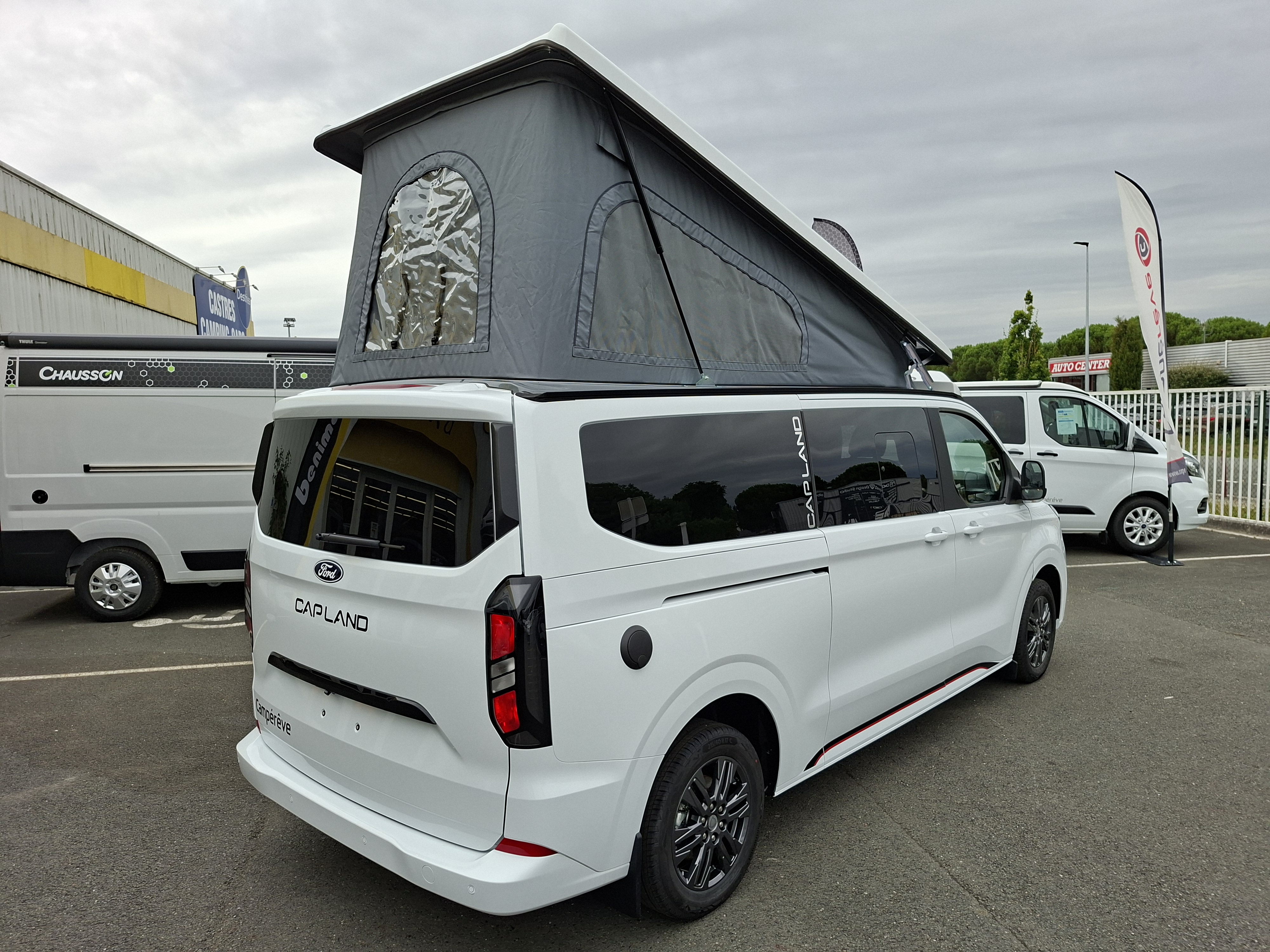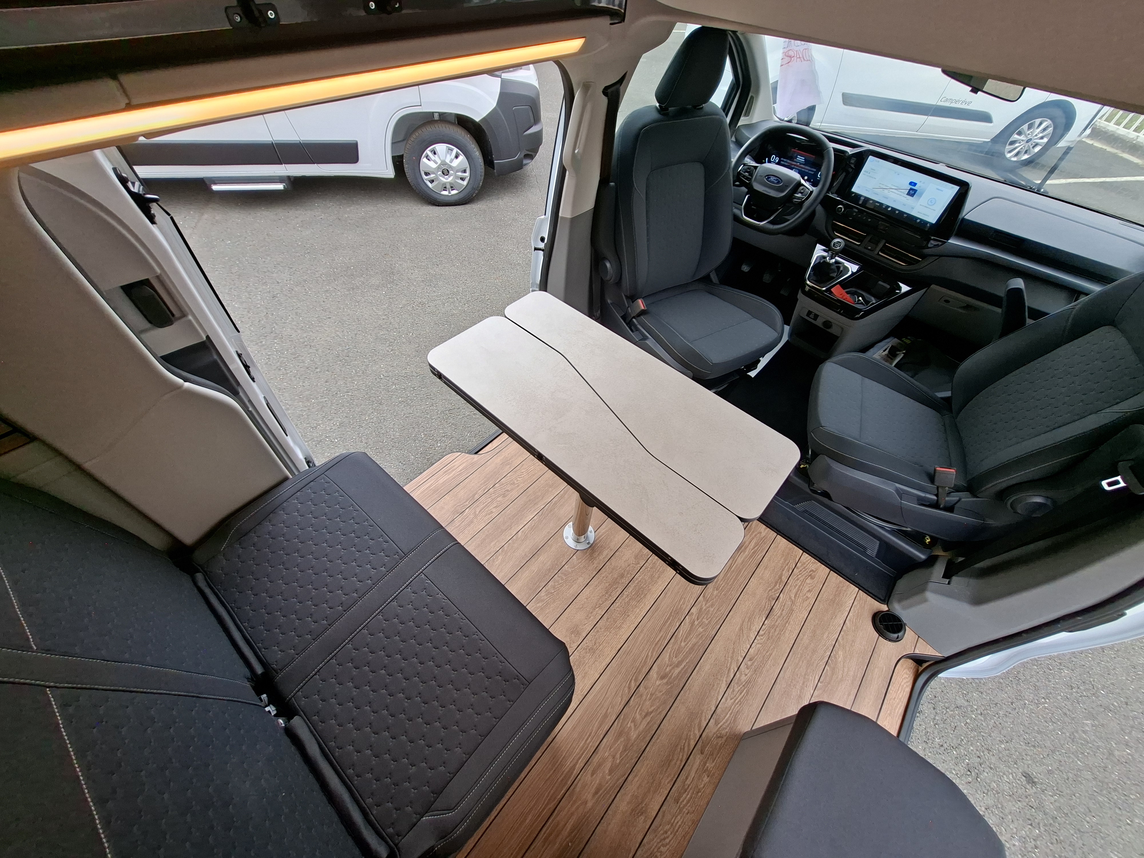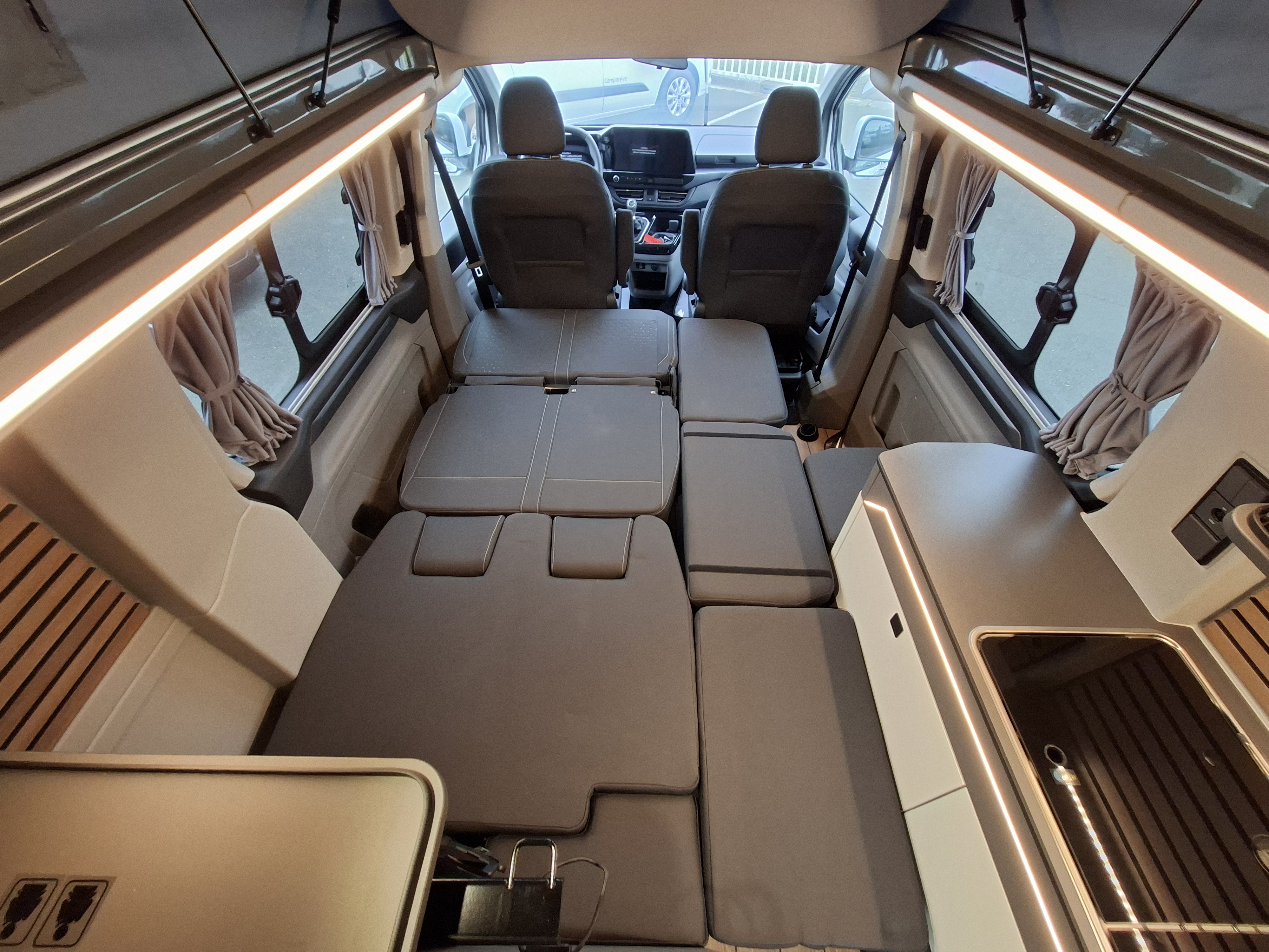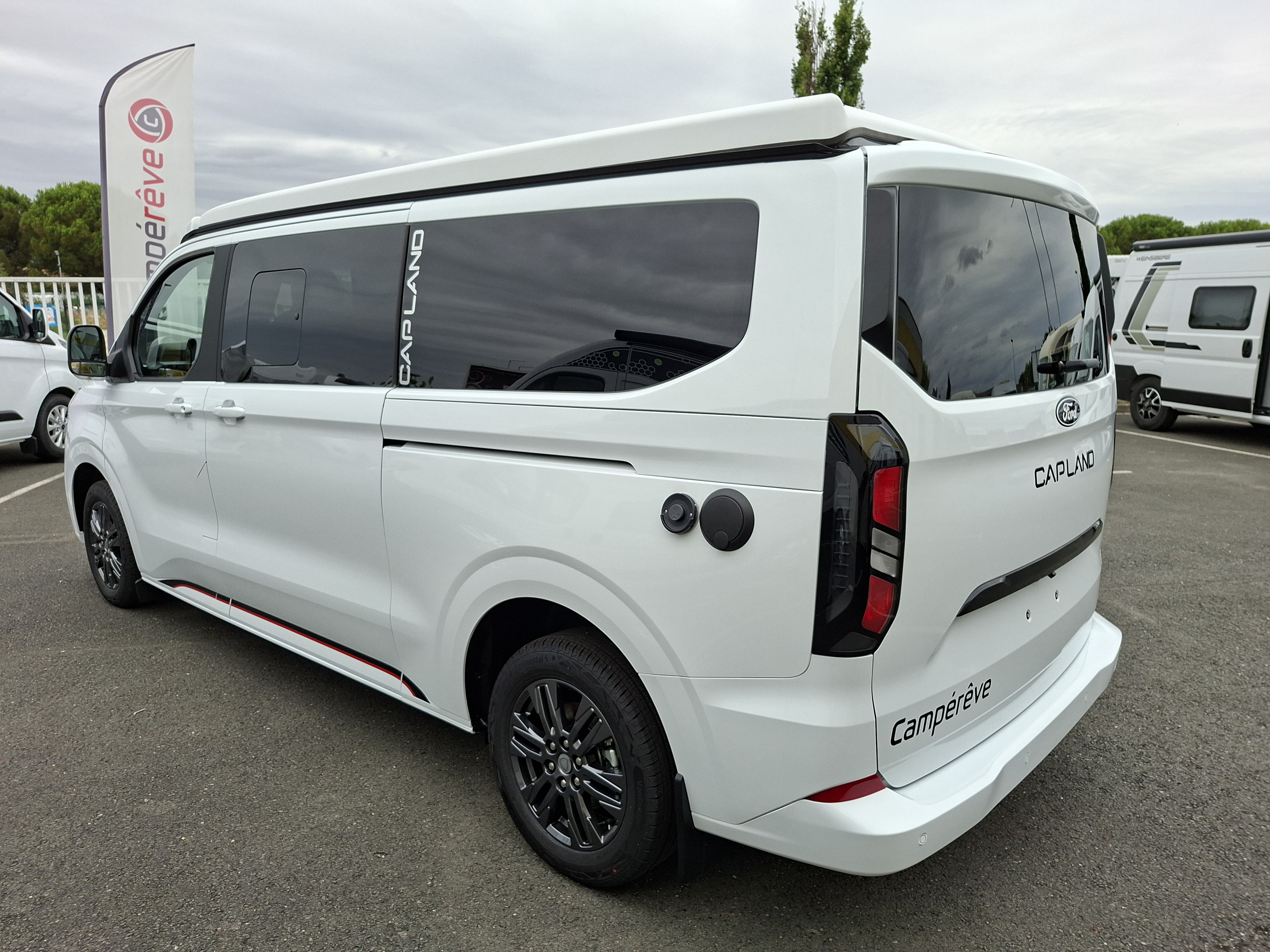 NOUVEAU CAMPEREVE CAP LAND 2025 ! En 2025 le Cap Land fait peau neuve, nouveau porteur Ford Custom et nouveau design intérieur ! Campérêve révolutionne le couchage dinette sur les vans avec un banquette breveté qui se transforme électriquement en couchage. Actuellement le Pack Ready est à 1 990 € au lieu de 3 190 € sur ce véhicule en stock. Alors n'attendez plus !