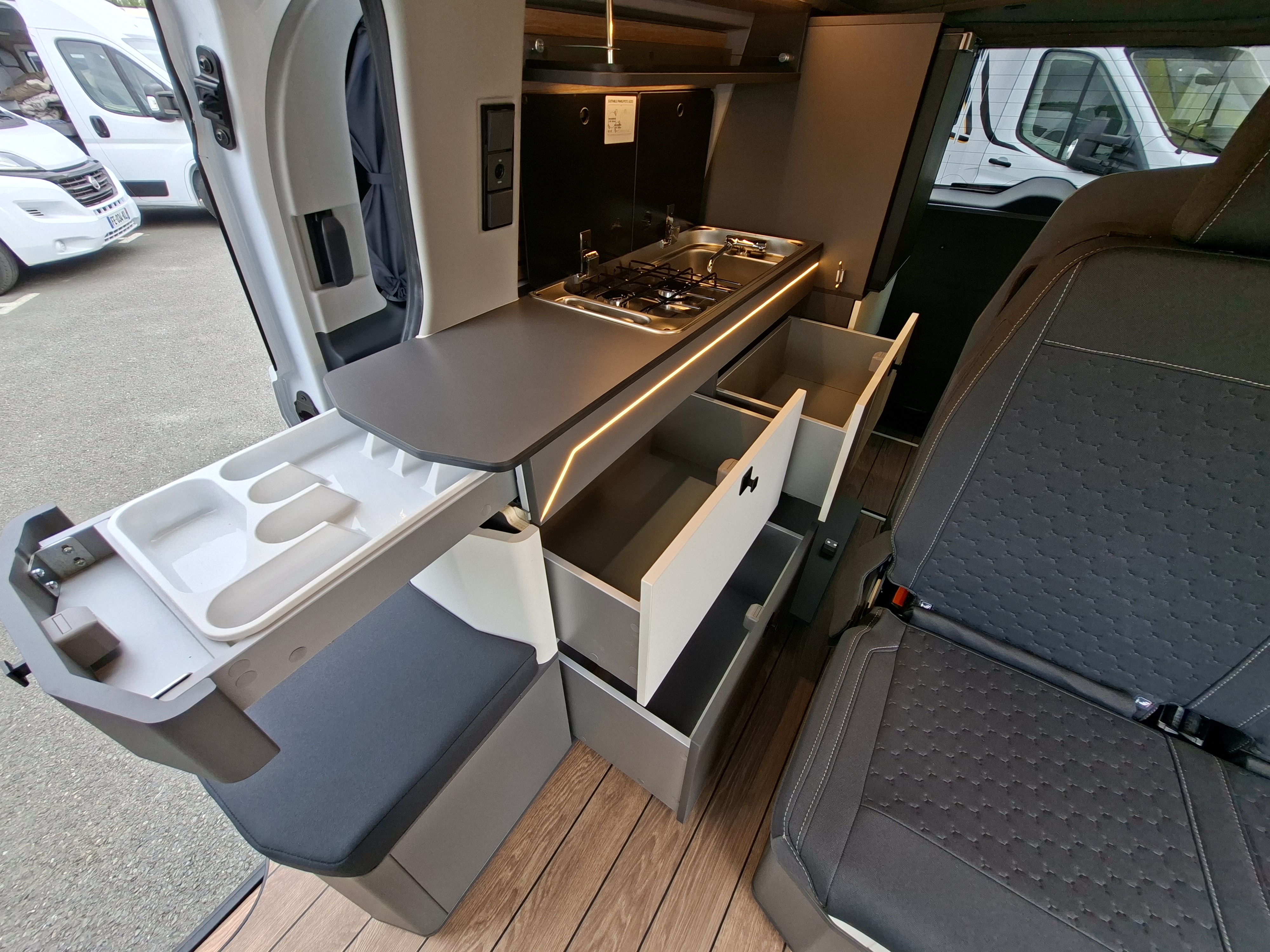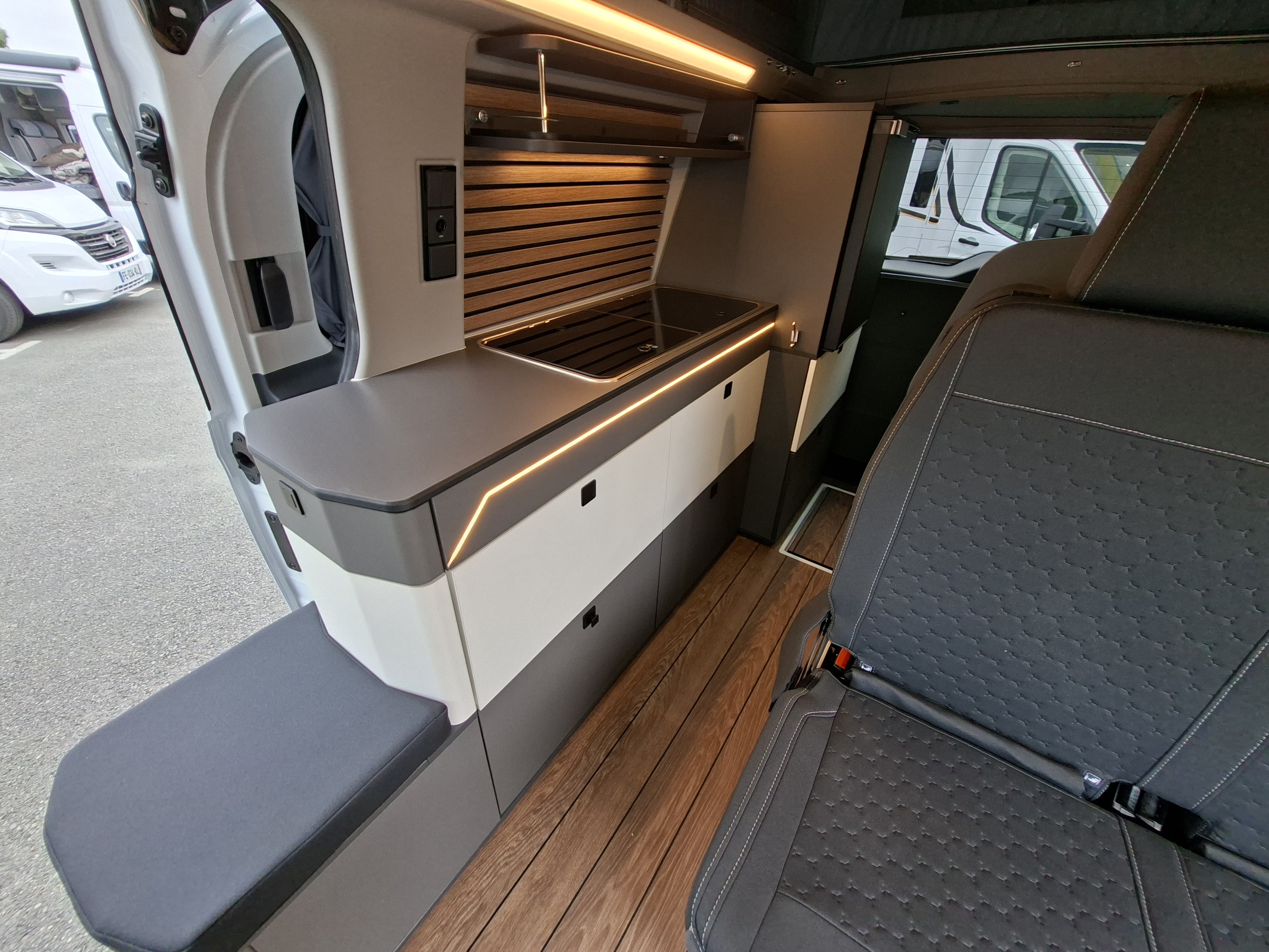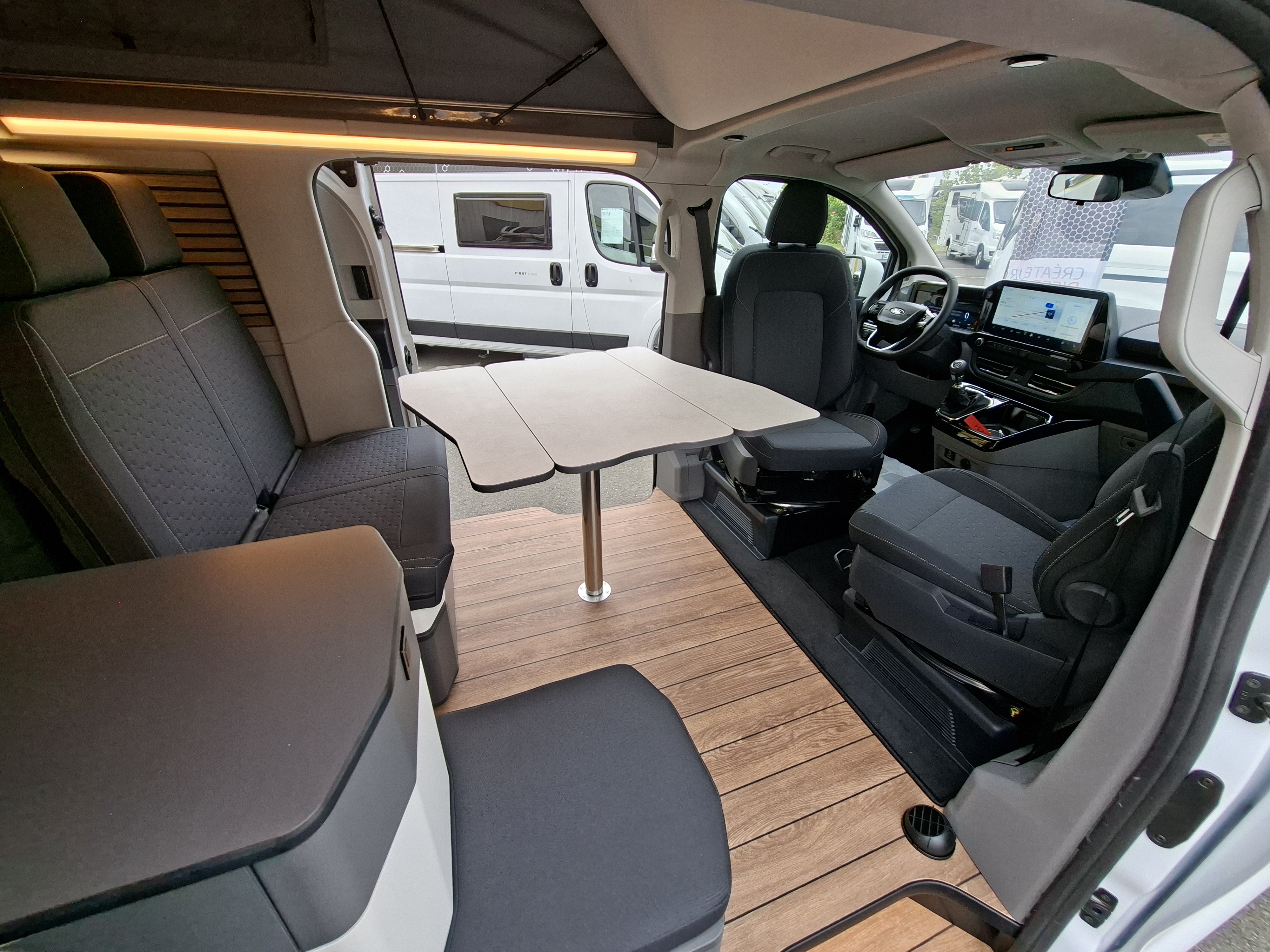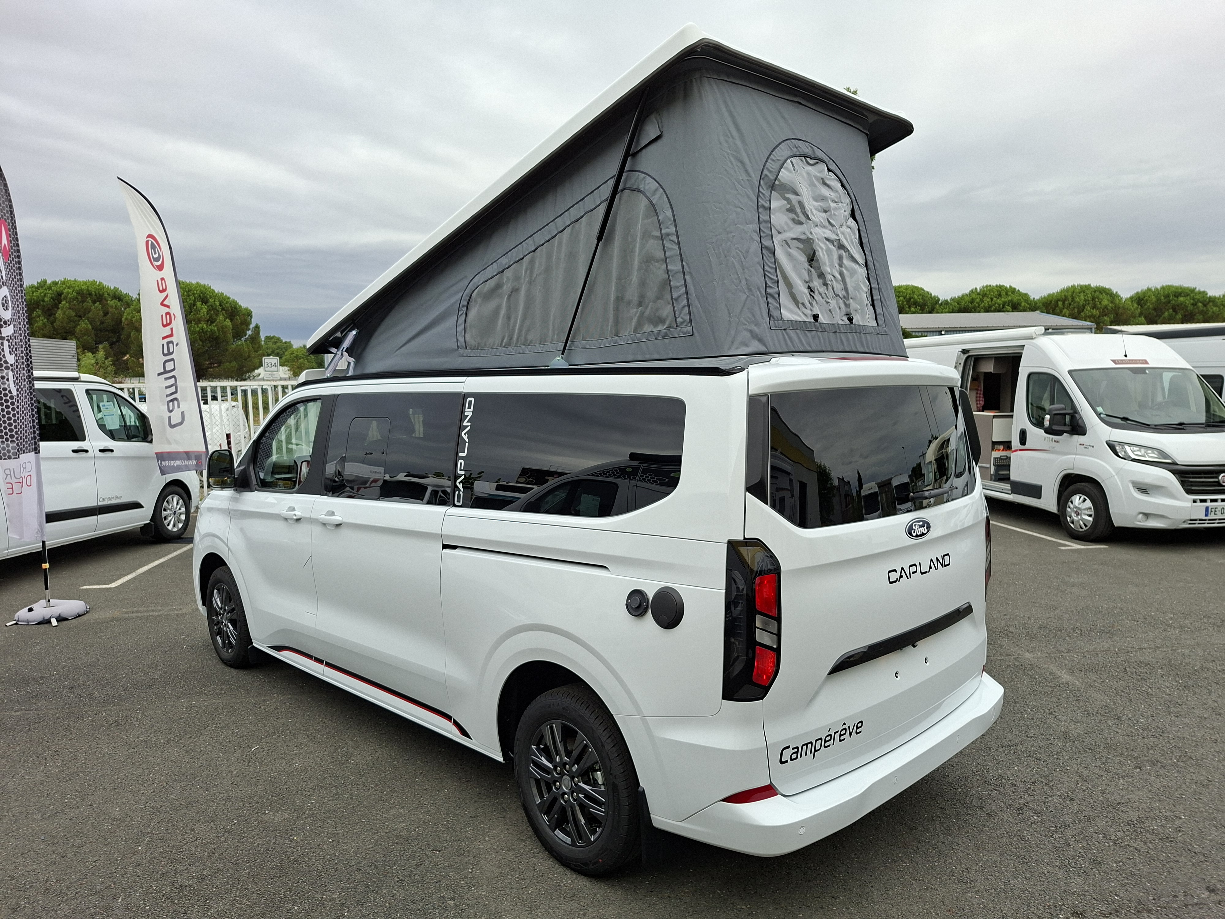 NOUVEAU CAMPEREVE CAP LAND 2025 ! En 2025 le Cap Land fait peau neuve, nouveau porteur Ford Custom et nouveau design intérieur ! Campérêve révolutionne le couchage dinette sur les vans avec un banquette breveté qui se transforme électriquement en couchage. Actuellement le Pack Ready est à 1 990 € au lieu de 3 190 € sur ce véhicule en stock. Alors n'attendez plus !