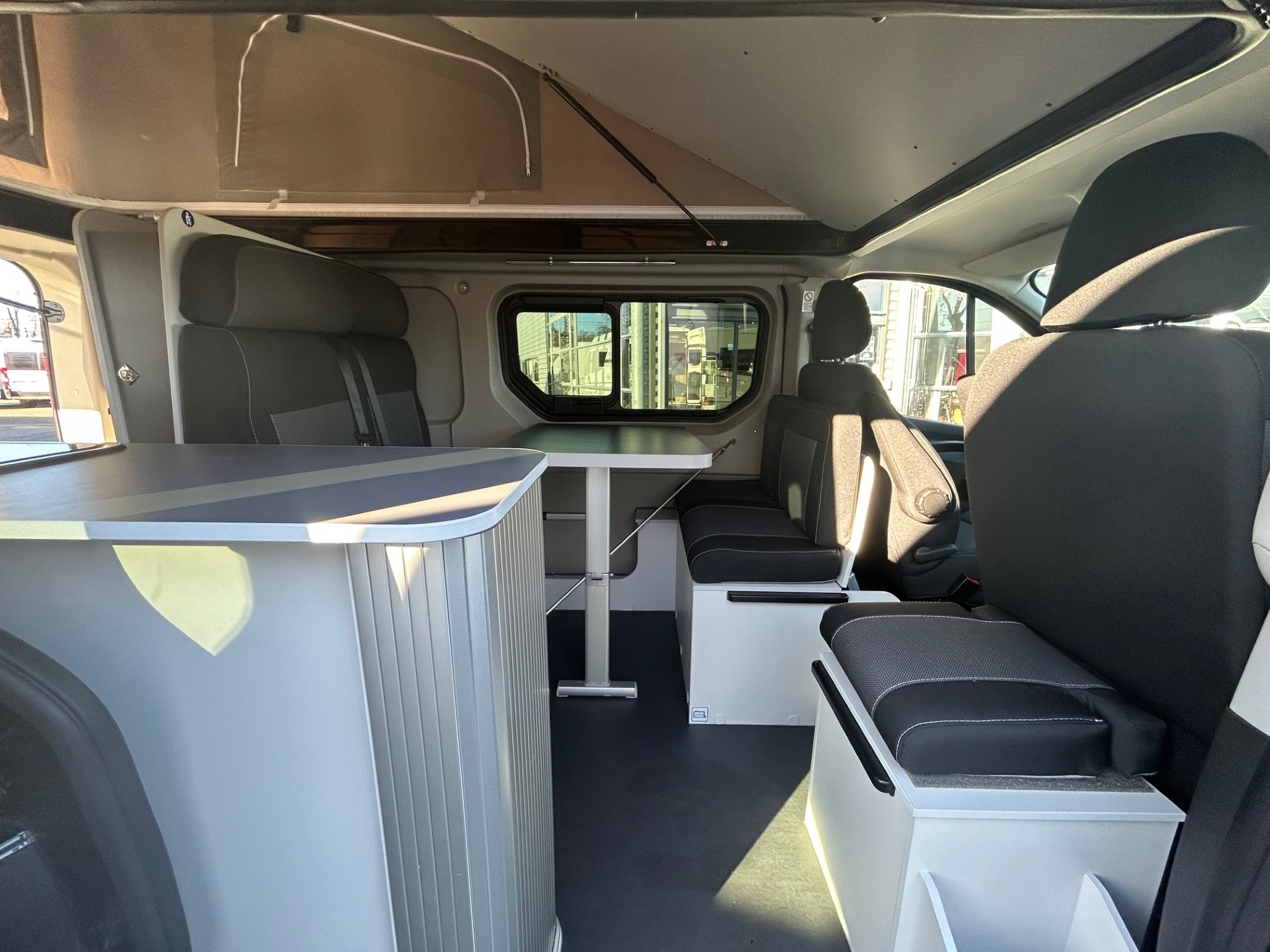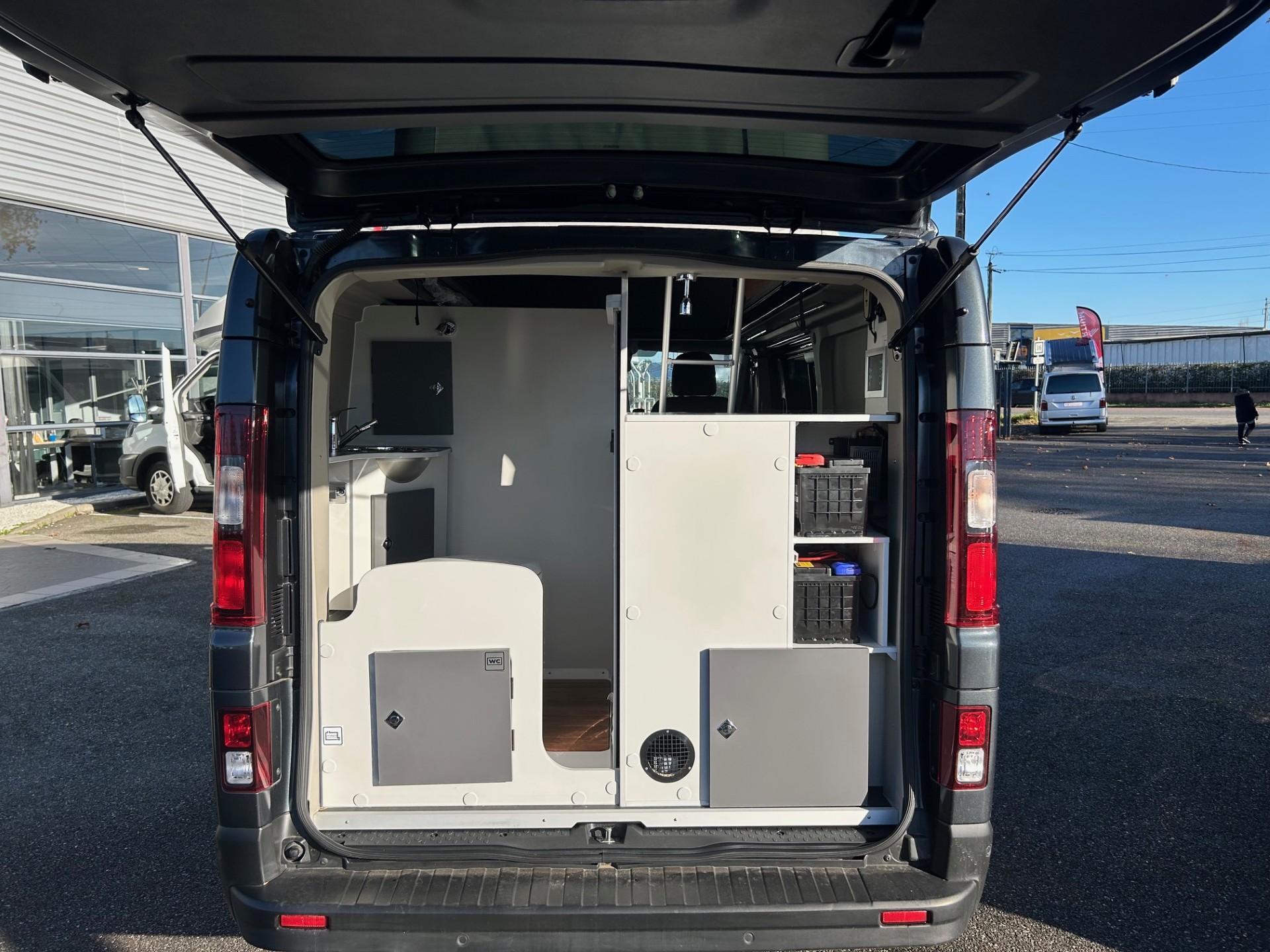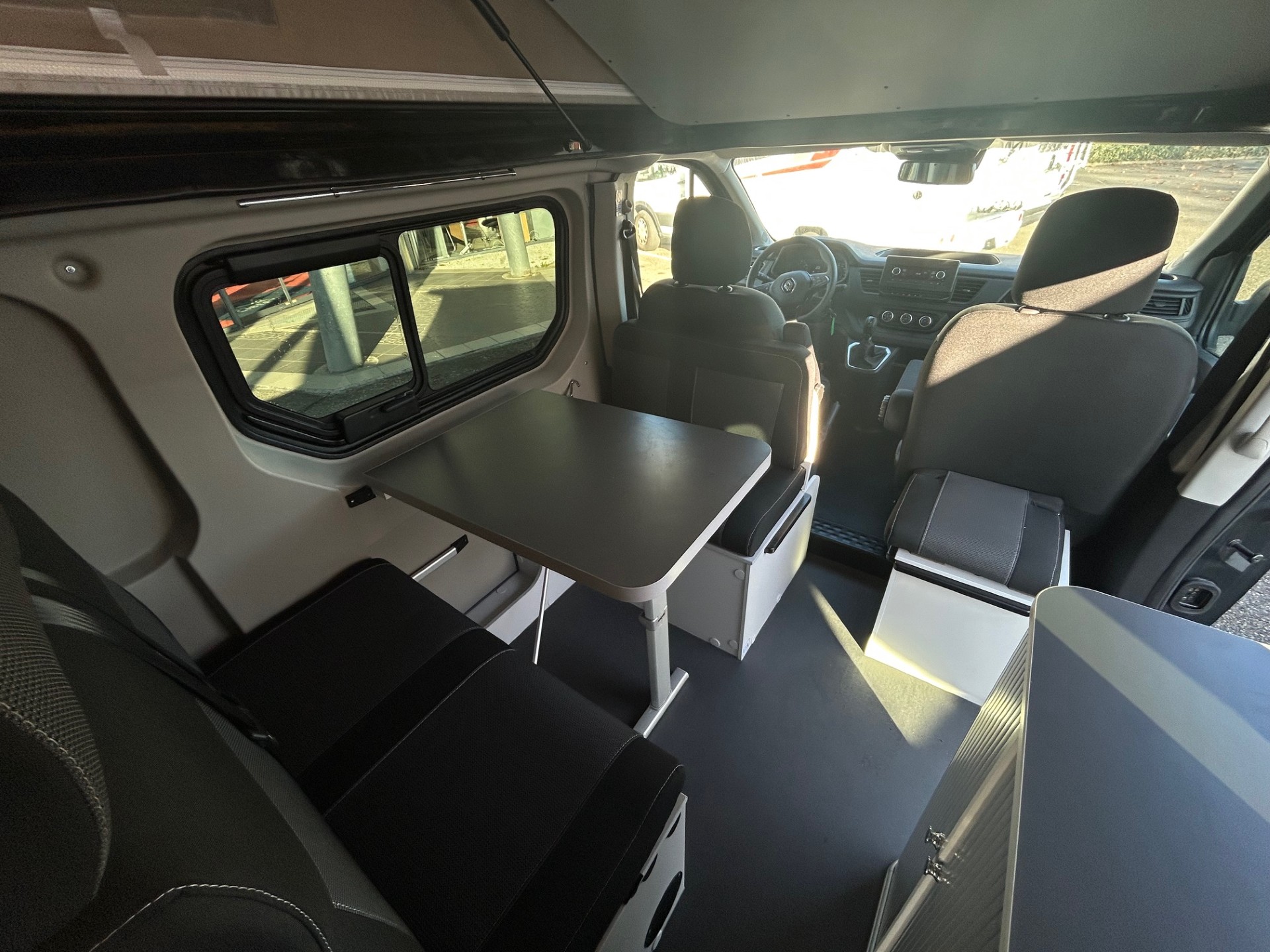 Un van complet disposant d'un coin WC, douche, 2 plaques de cuisson, évier, petit salon. Le tout accompagné d'un toit relevable et d'une boite automatique pour un maximum de confort !
