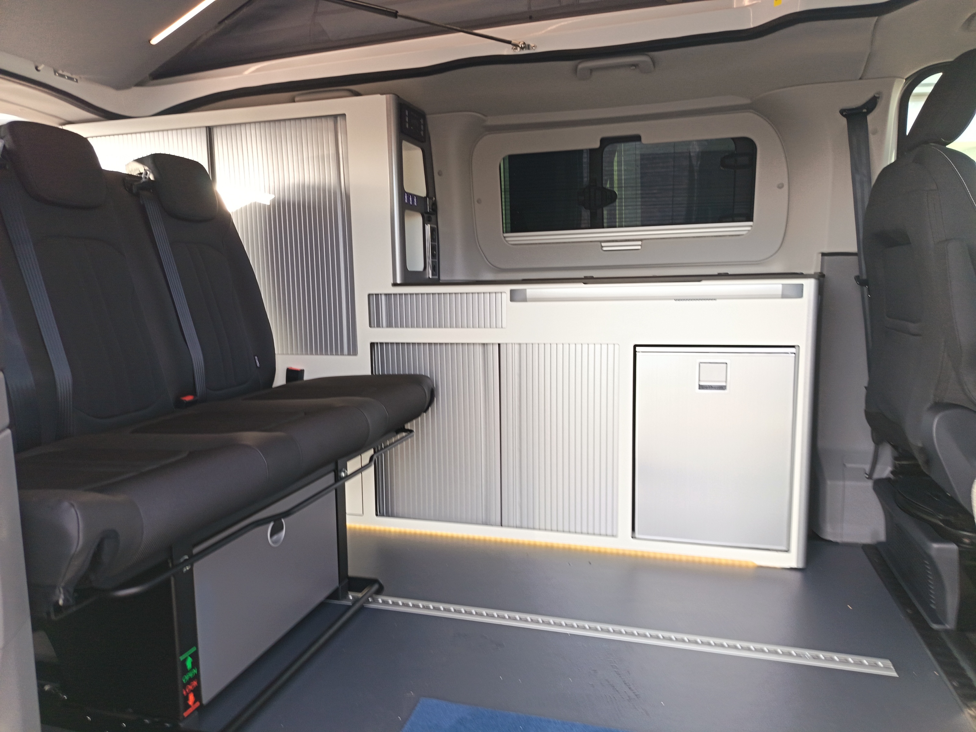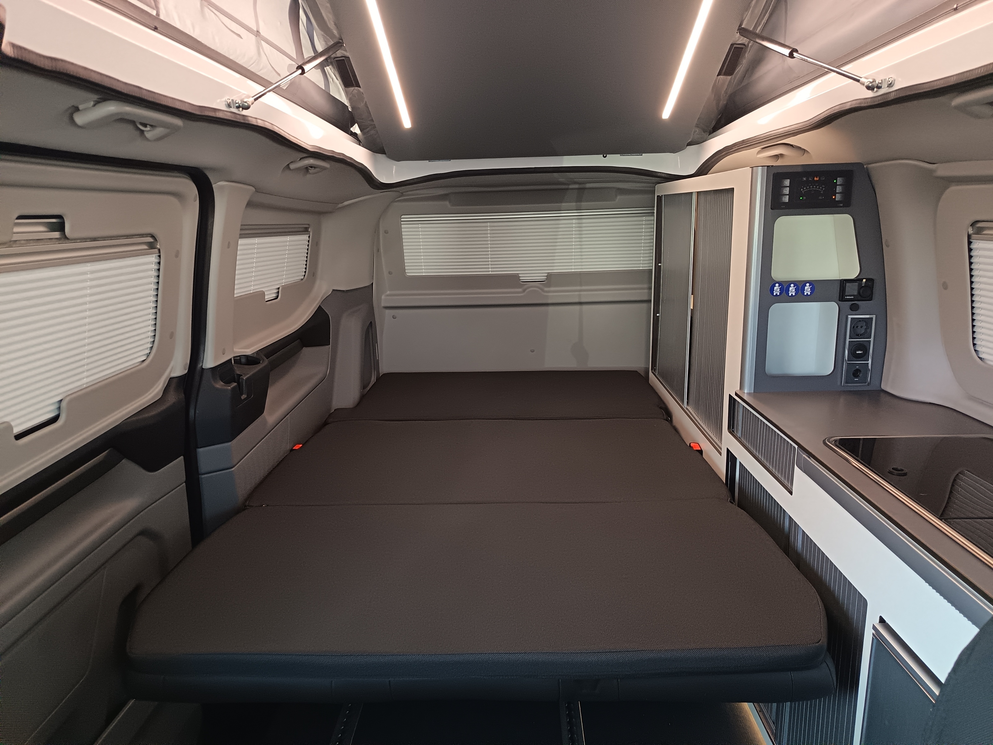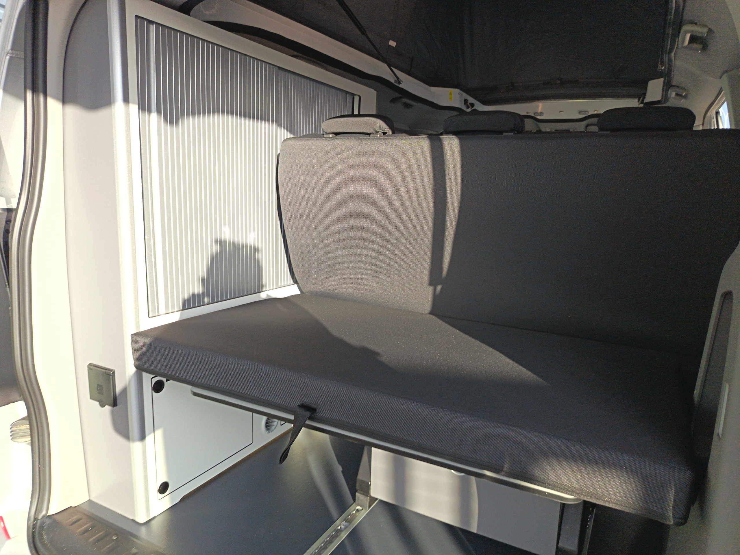 Van aménagé avec une isolation performante, chauffage stationnaire Webasto et homologué 5 places. Grand couchage dans le toit relevable, une banquette facilement transformable en couchage. Véhicule astucieusement aménagé avec de nombres rangement.