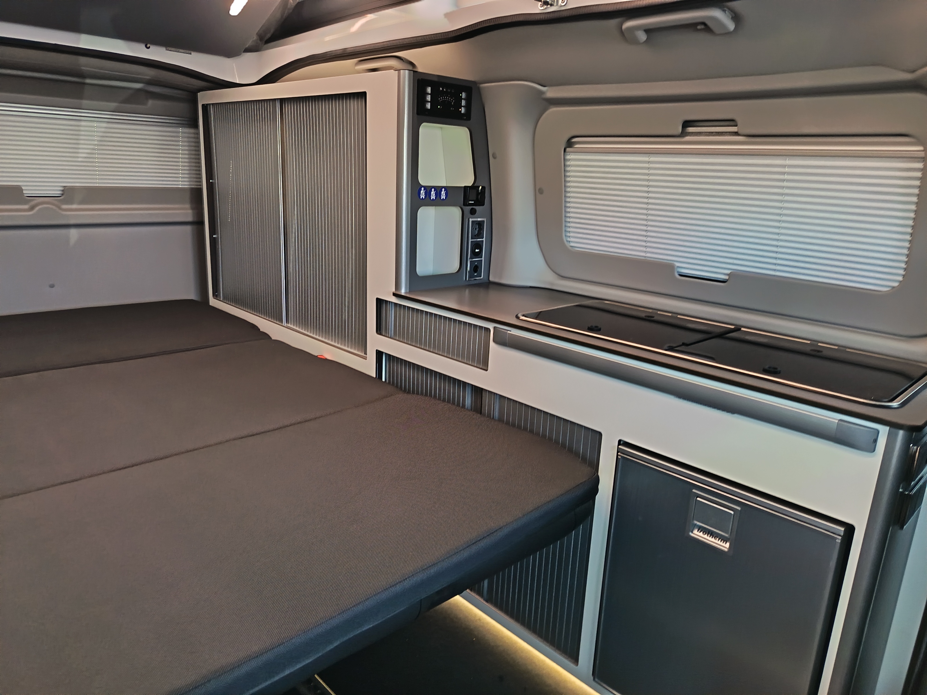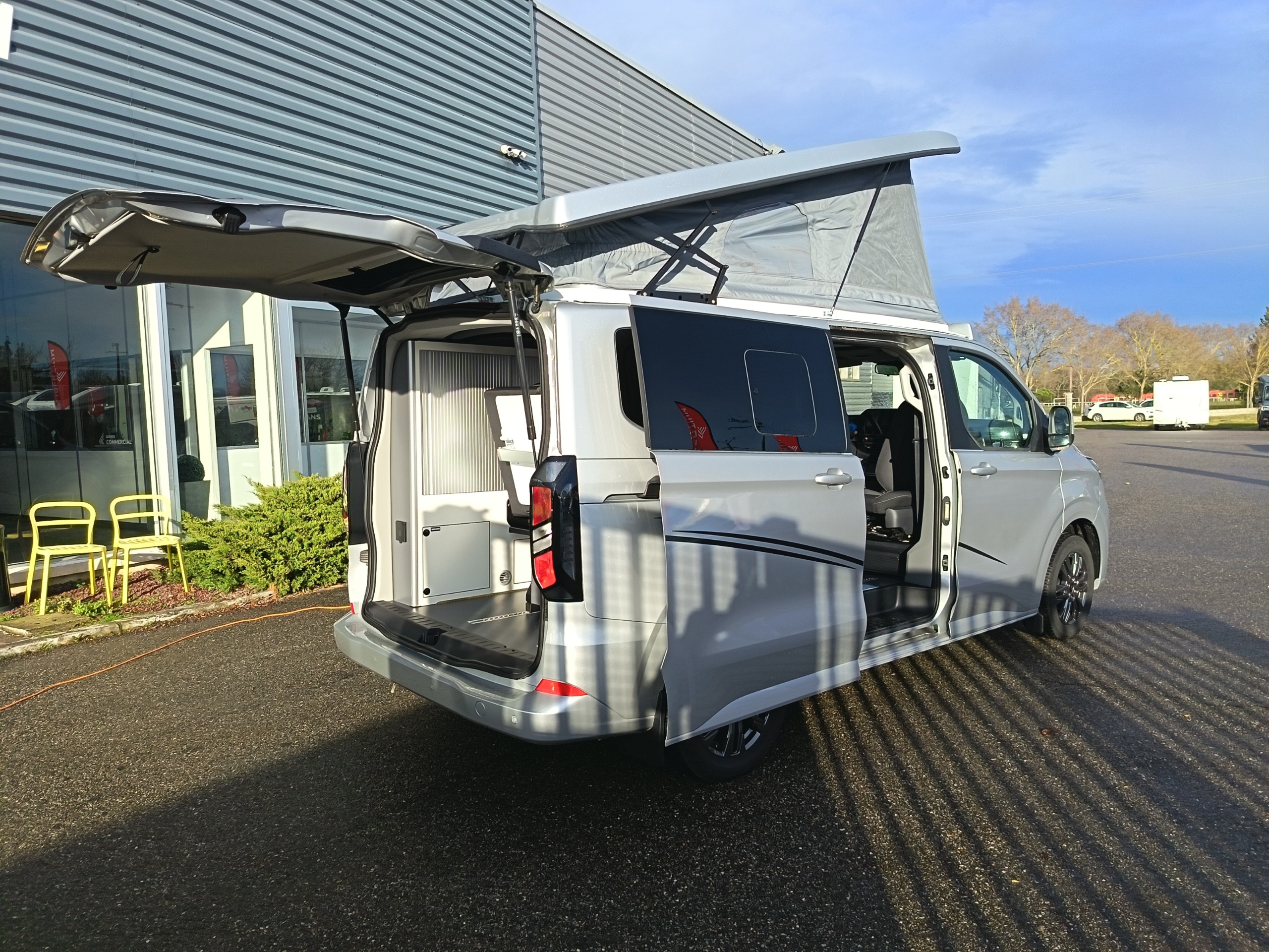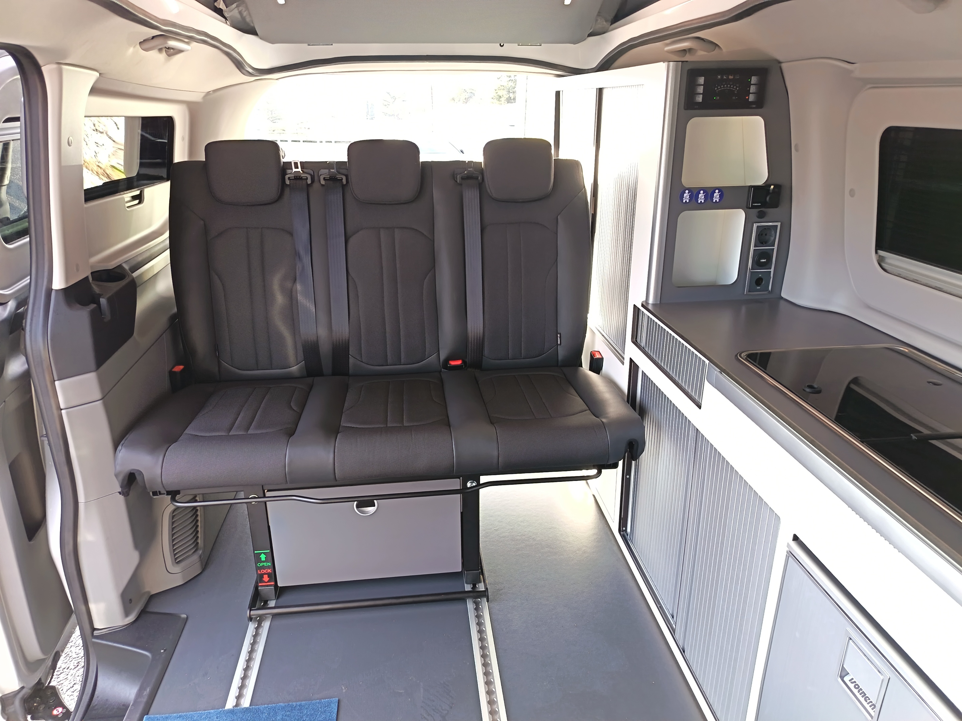 Van aménagé avec une isolation performante, chauffage stationnaire Webasto et homologué 5 places. Grand couchage dans le toit relevable, une banquette facilement transformable en couchage. Véhicule astucieusement aménagé avec de nombres rangement.