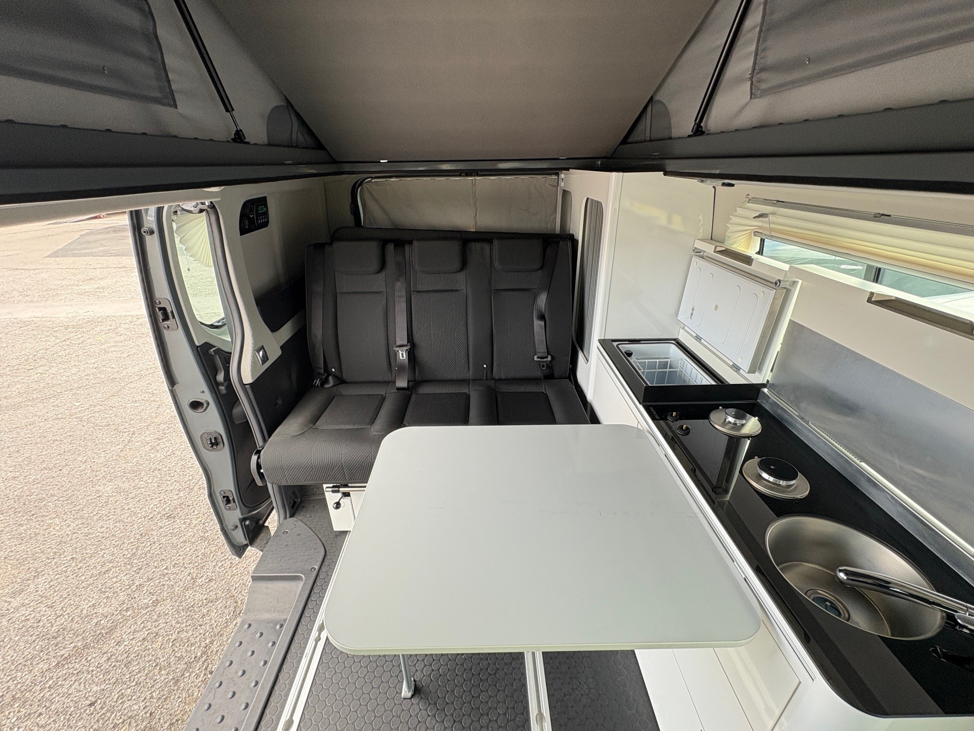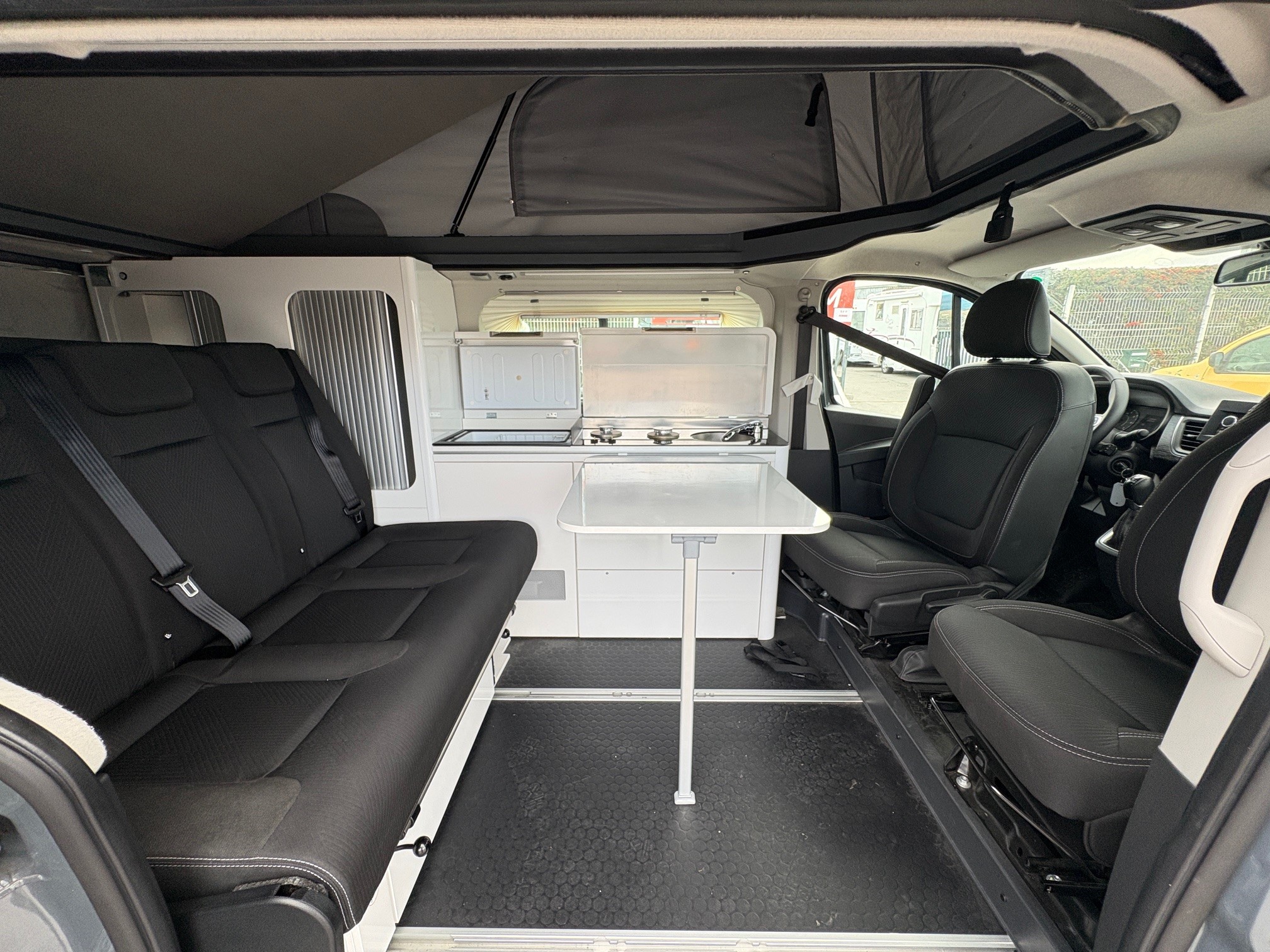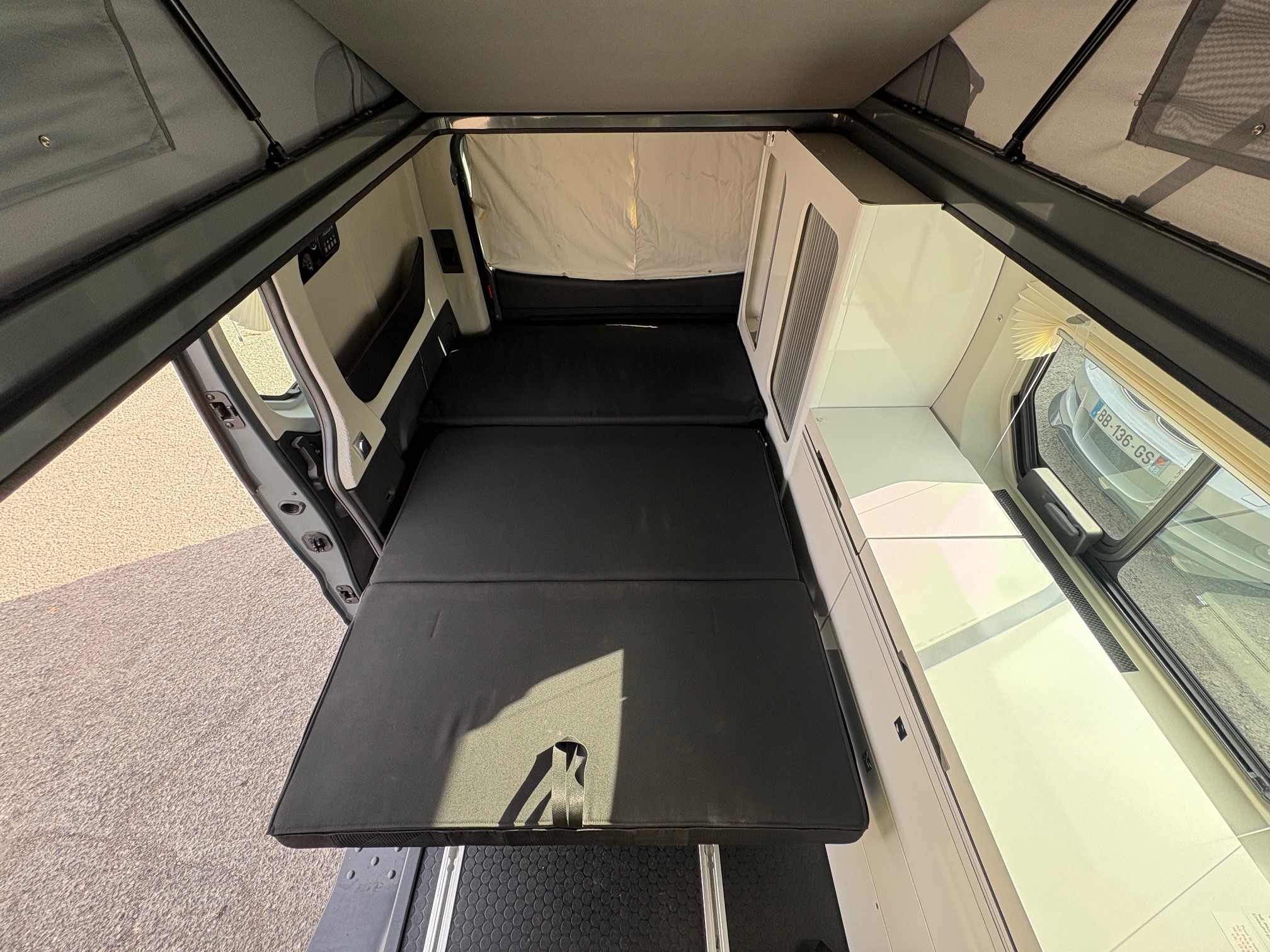 Renault Trafic Hélios Vario Camp by Adria, motorisation 150 ch boîte automatique, élégant gris Lanzarote. Aménagement intelligent avec lit bas + lit relevable, isolation renforcée pour un confort toute saison. Équipements premium : jantes alliage 17”, volant multifonctions, climatisation. Un van polyvalent, idéal pour voyager confortablement sans compromis sur le style.