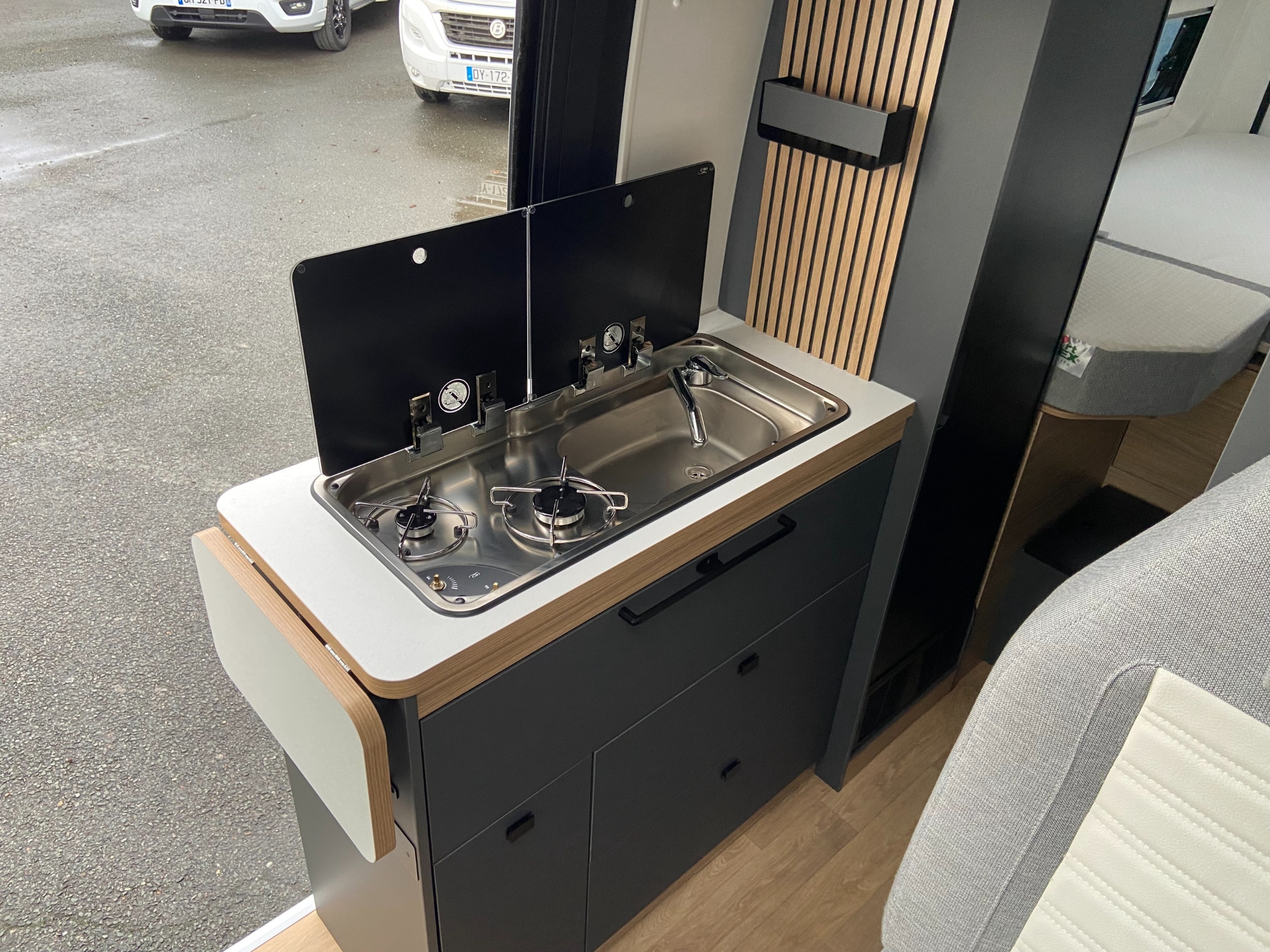Fourgon aménagé en lit jumeaux, disposant de nombreux équipements et d'une boîte automatique ! a venir découvrir sur notre site Libertium de sainte eulalie !