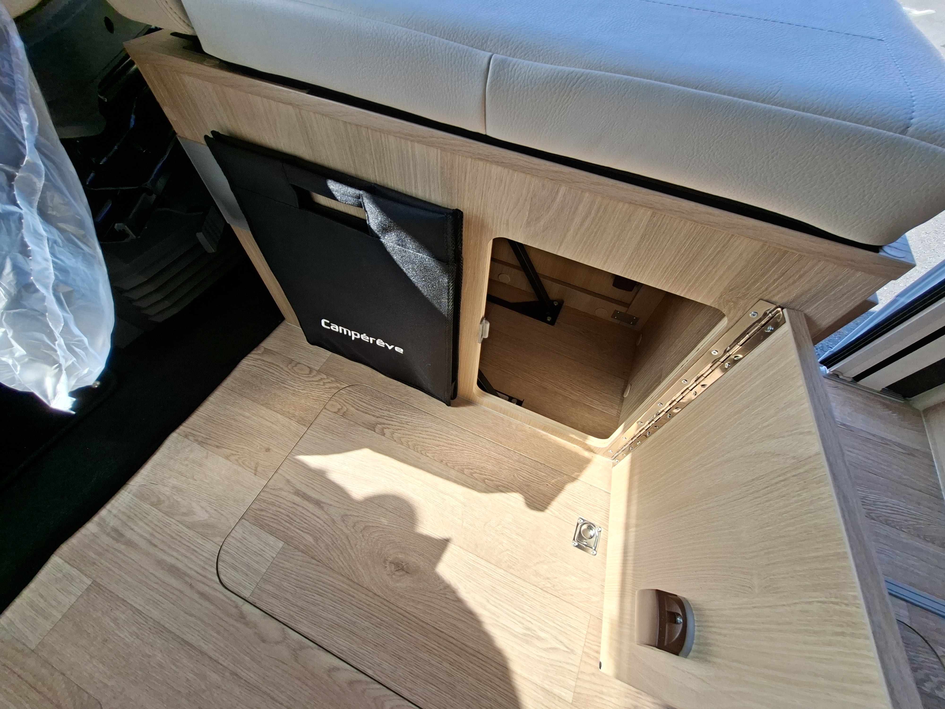 Un des rares fourgons 5 places carte grise et double plancher. Le Family Van de chez Campérêve ! Un fourgon haut de gamme de fabrication Française, conçu pour les familles. Seulement 5.99 mètres, il offre malgré tout un salon en L spacieux, une salle de bain Duo Space sans rideau de douche et un réfrigérateur de 149L. N'attendez plus ! Venez le découvrir dans notre concession Libertium Castres. *Pneus all season 3PMSF + Sièges cabine réglables en hauteur, pivotants avec 2 accoudoirs réglables + Peinture pare-chocs avant couleur carrosserie + Feux antibrouillard + Inverseur de gaz automatique + Porte moustiquaire ouvrant latéral + Haut-parleurs et commandes radio (ON, OFF, volume et stations) déportées en cellule + Station multimédia DAB PIONEER® avec écran 6,8” et fonctions APPLE CAR PLAY/ANDROID AUTO + Caméra de recul avec vision nocturne + 2e clef télécommandée (PLIP) + Traction+ Hill descent + Commande au volant pour la radio.