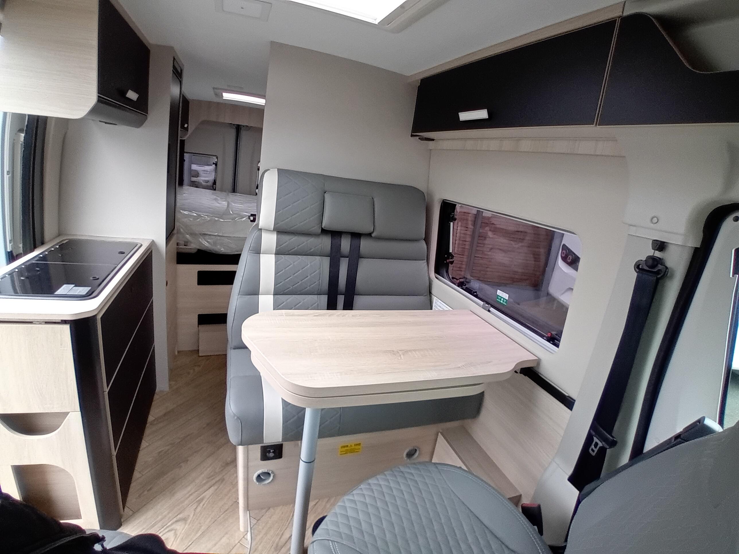 - Store intérieur cabine, complément de couchage dinette.