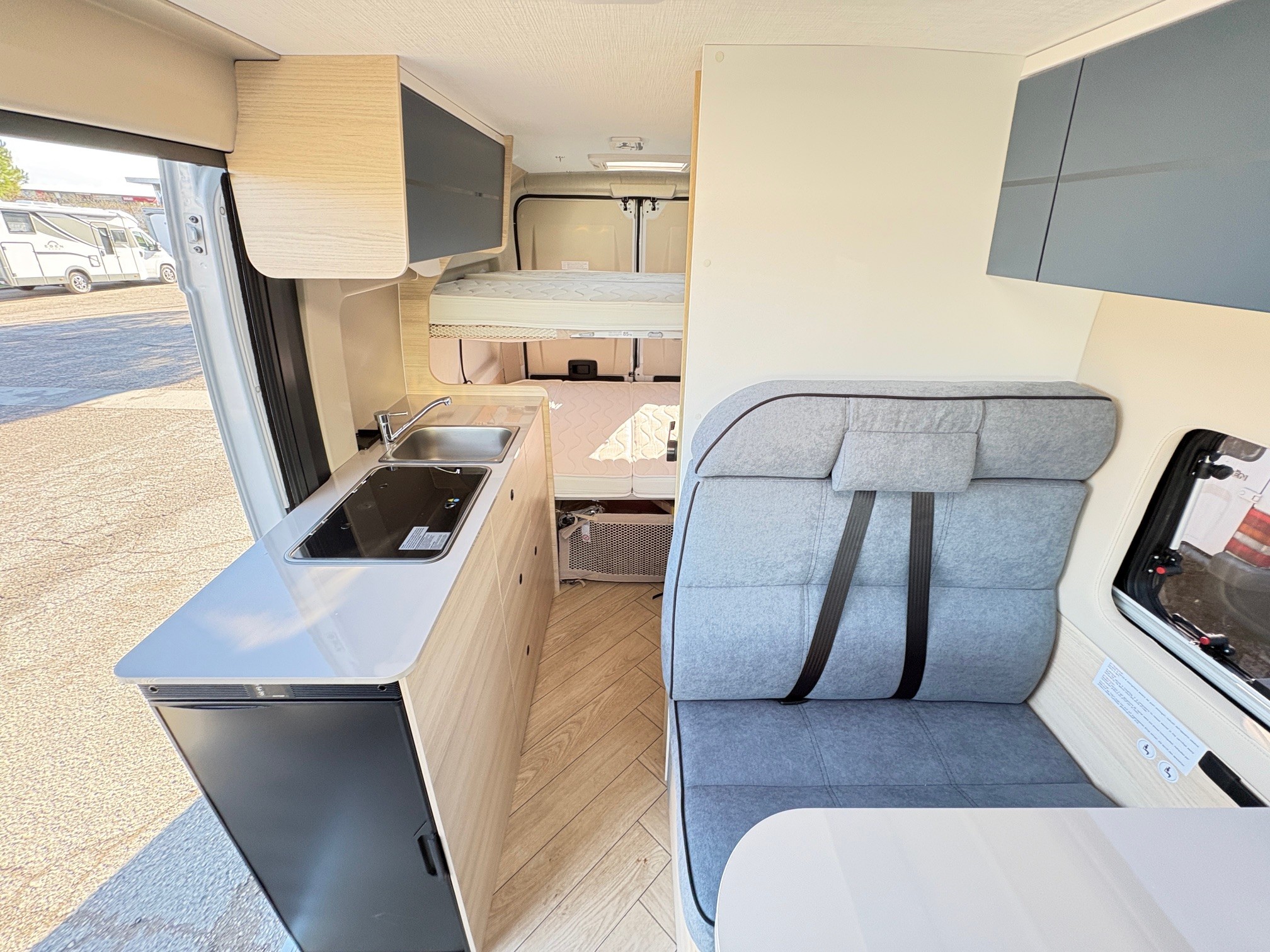 Le secret du succès de V594max ? Ses couchages modulables! En moins de 6 mètres, ce fourgon aménagé propose 4 couchages permanents. Chausson va plus loin en rendant ces couchages amovibles : Vous partez à 2 ou 3 seulement ? Retirez la double couchette supérieure en tout ou partie…