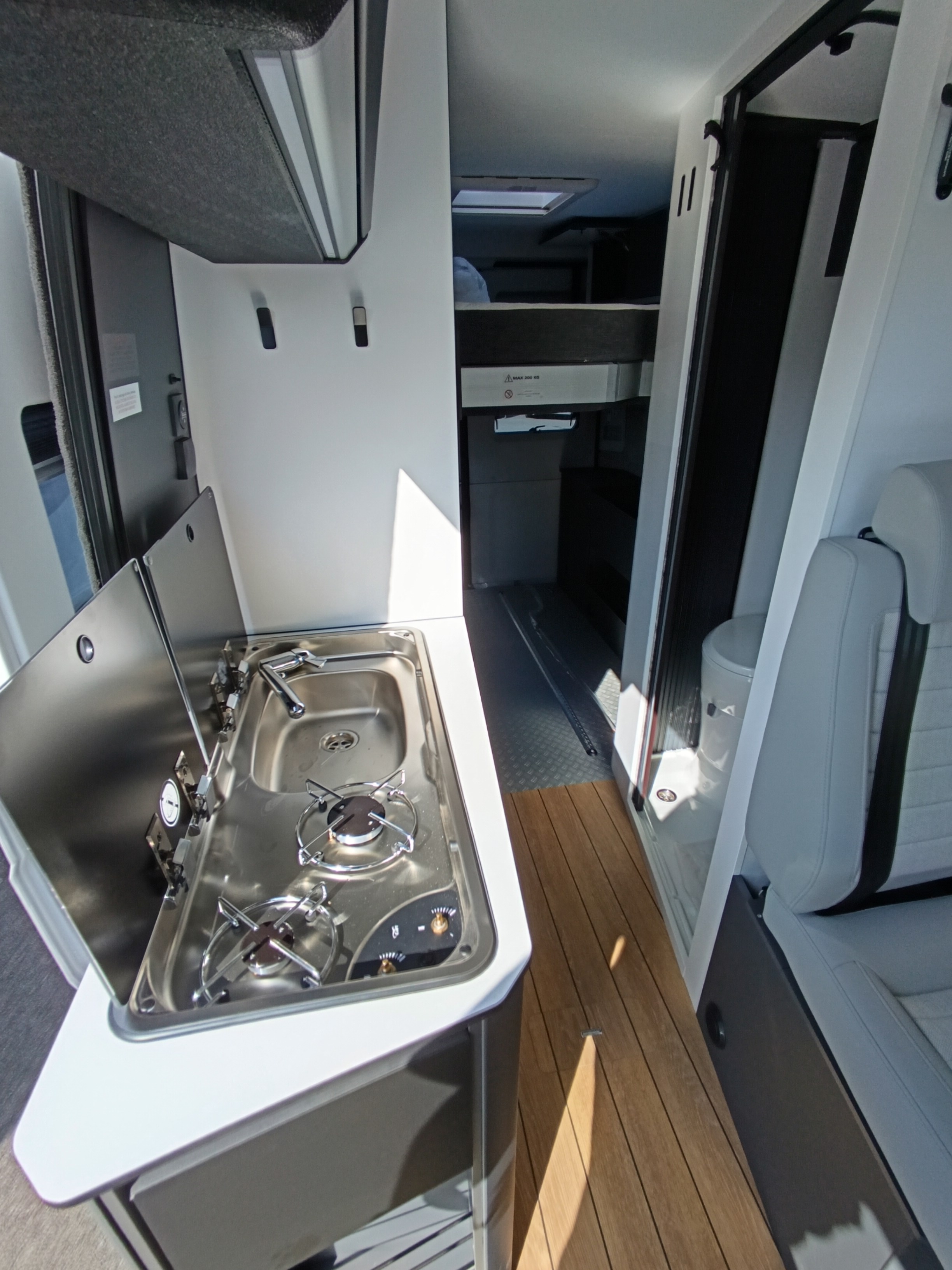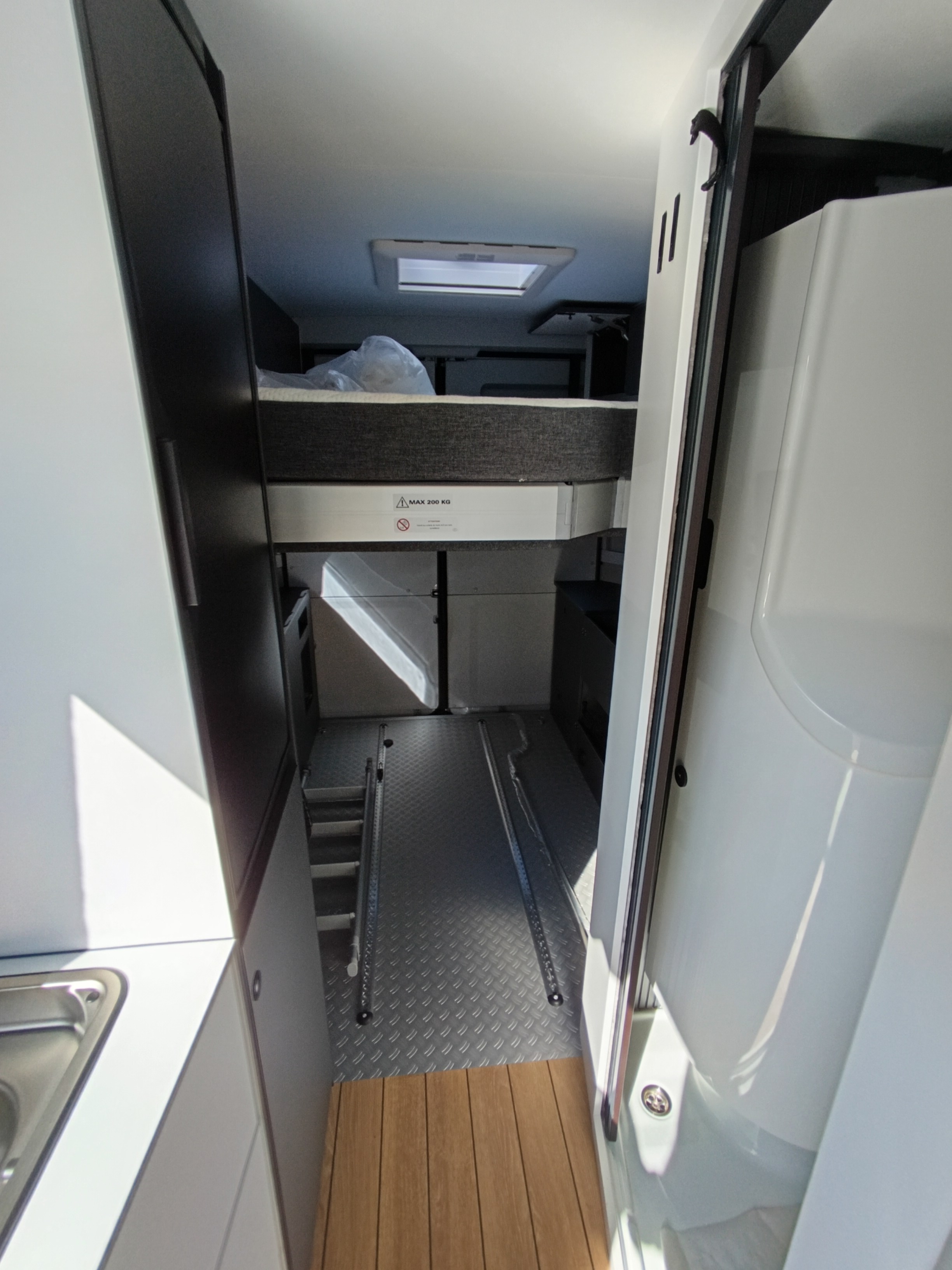 Le 63 GX, c’est un van qui comporte une maxi-soute pour faciliter le chargement. Le lit de pavillon électrique pouvant être remonté à volonté, vous pourrez par exemple y mettre une moto ou des vélos et garder un espace suffisant pour dormir au-dessus ainsi que son couchage en toit relevable Jouez la carte de vos passions, sans renoncer au confort !