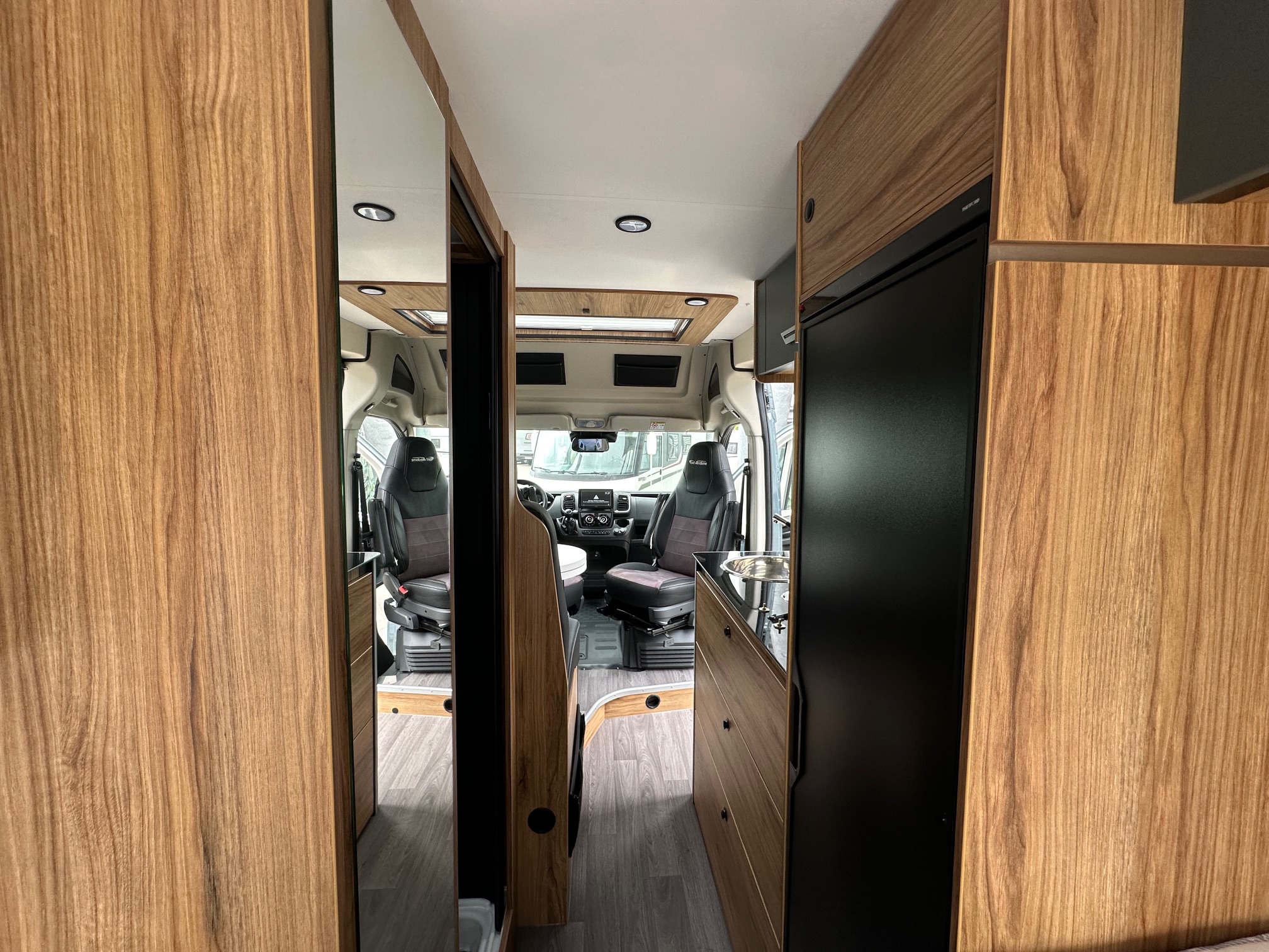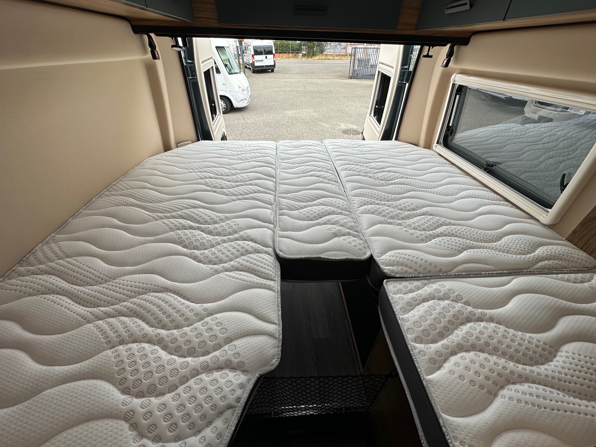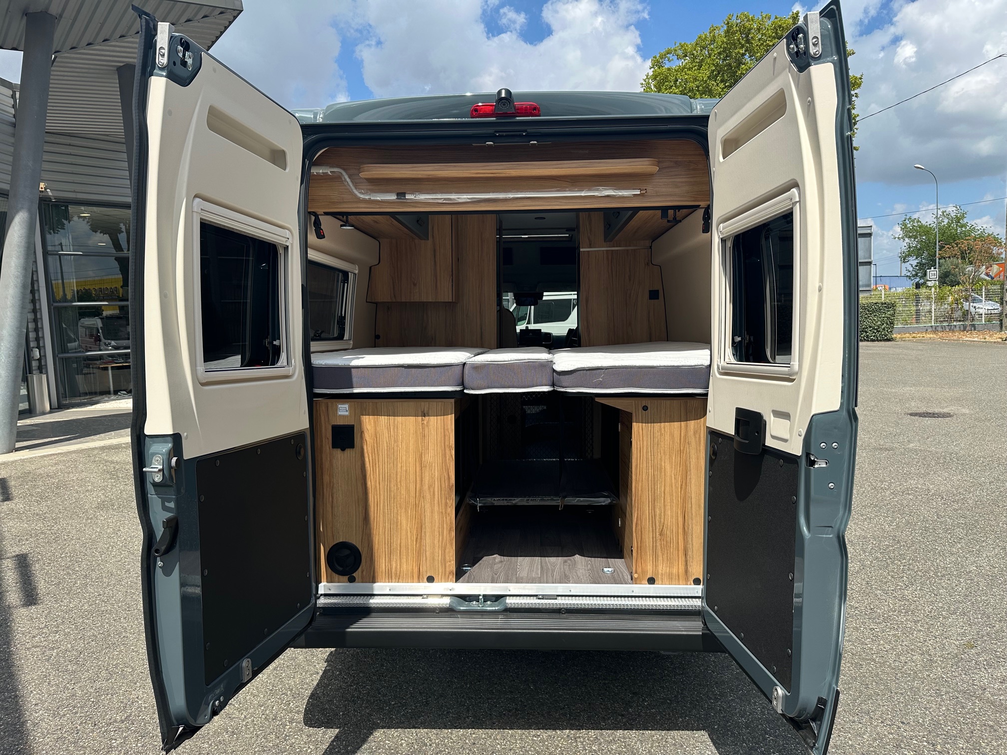 Le Duo Van crée en 2014, a été spécialement conçu pour les couples, offrants des espaces de vie généreux. Ses lits arrière jumeaux sur sommiers à lattes peuvent se transformer en un grand lit simple, avec de nombreux rangements intégré. Son coin toilette, avec WC escamotable et paroi de douche, est à la fois pratique et spacieux.