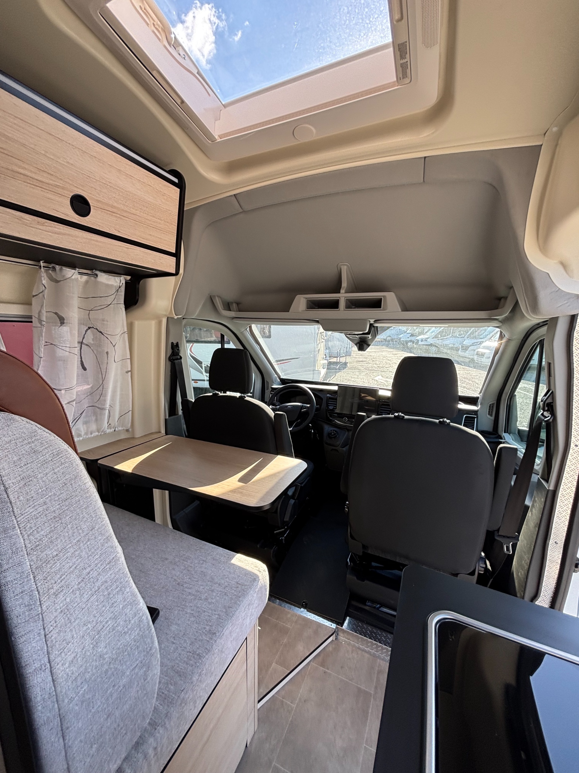 Le van Ford qui manquait. Grâce à ses 4 places carte grise, ses 3 places de couchage (dont une aménageable) et son lit arrière transversal avec hayon panoramique, c’est la solution idéale pour partir à l’aventure, profiter de longs week-ends ou vivre la ville en conservant un esprit outdoor. Et à bord, tout est sous contrôle : avec la fiabilité mécanique Ford et la boîte automatique de série, chaque trajet est fluide, silencieux et relaxant. Pour un plaisir de conduite signé Rimor.