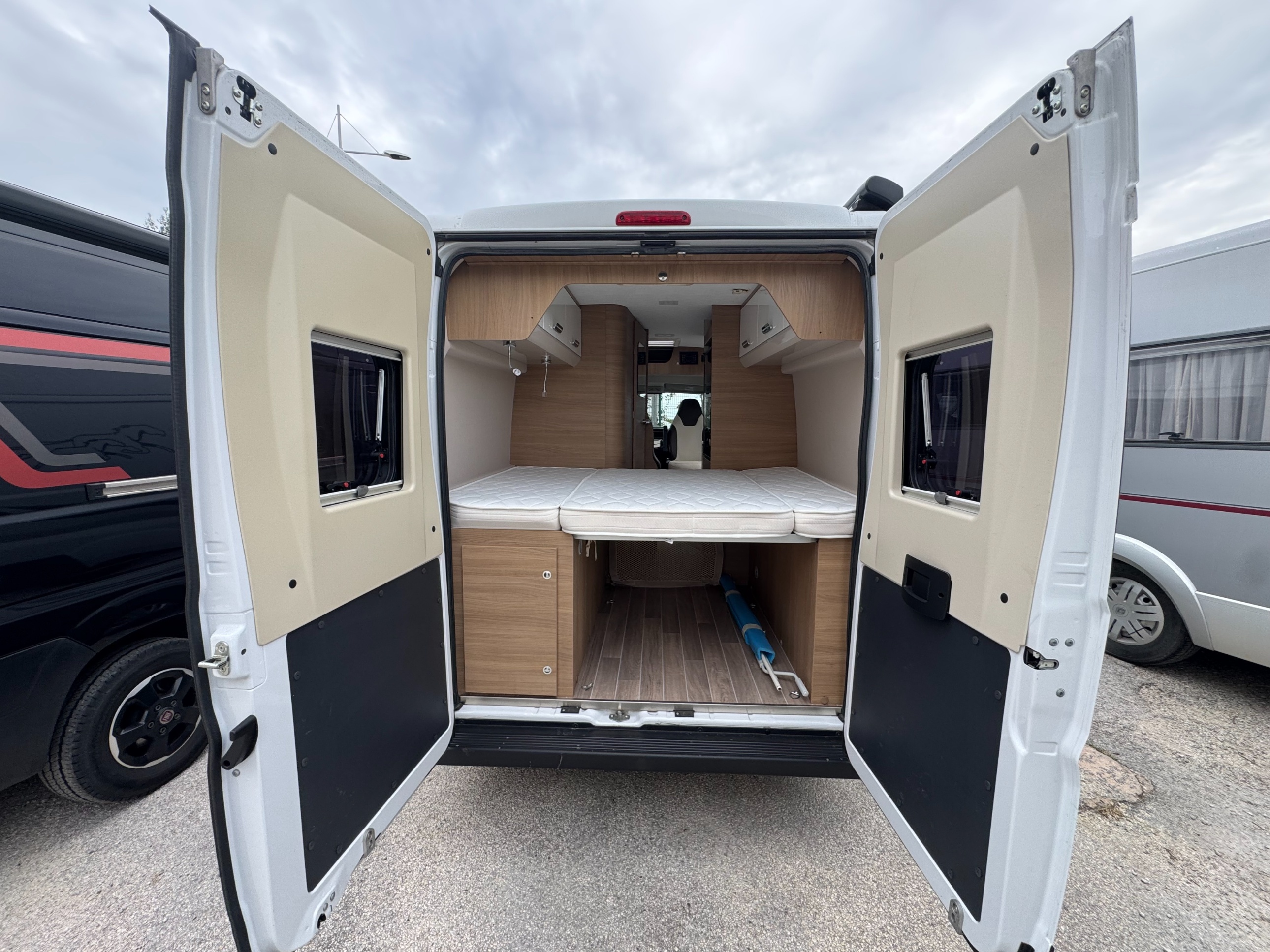 Le McLouis Van 3 est une valeur sûre. Un Ducato de 5,99m de long, doté d’une implantation classique, avec un lit transversal arrière et un cabinet de toilette tout-en-un. C’est cet agencement à succès qui explique pourquoi le Van 3 a été choisi pour intégrer la série spéciale Yearling, a venir découvrir chez Libertium Toulon.